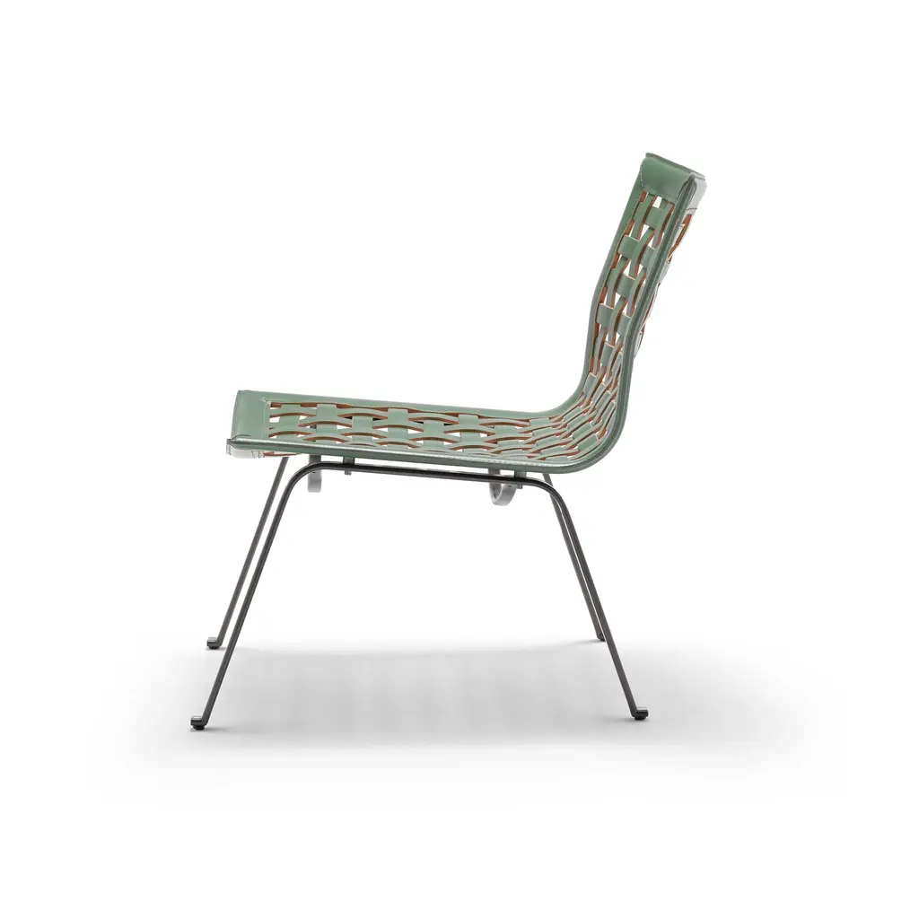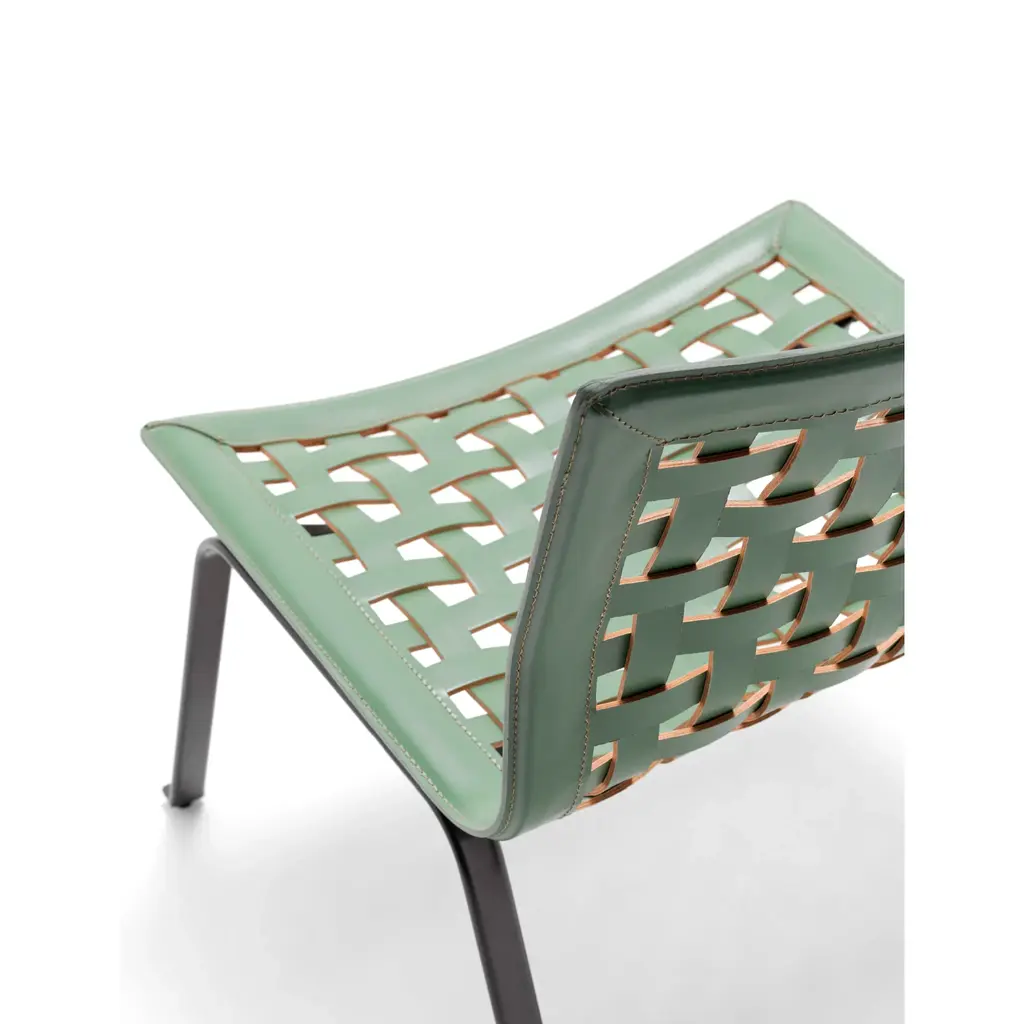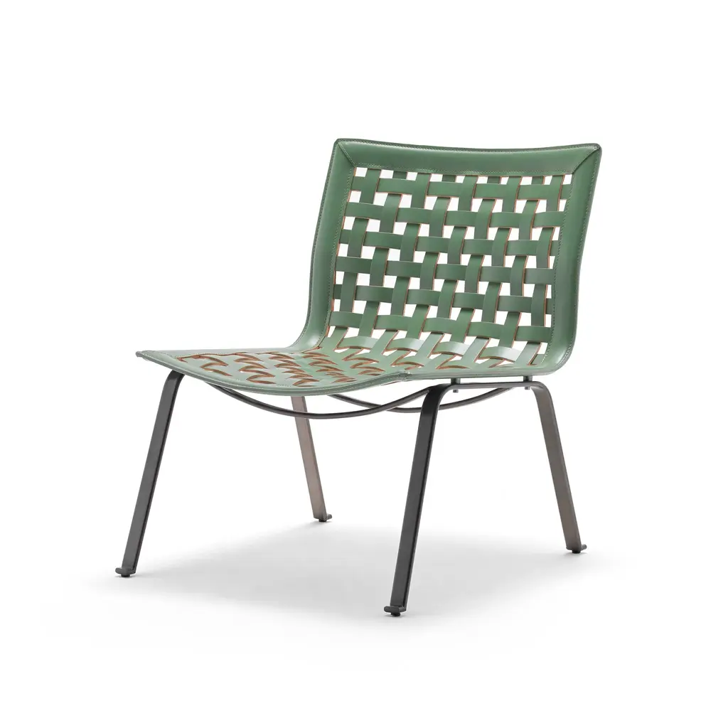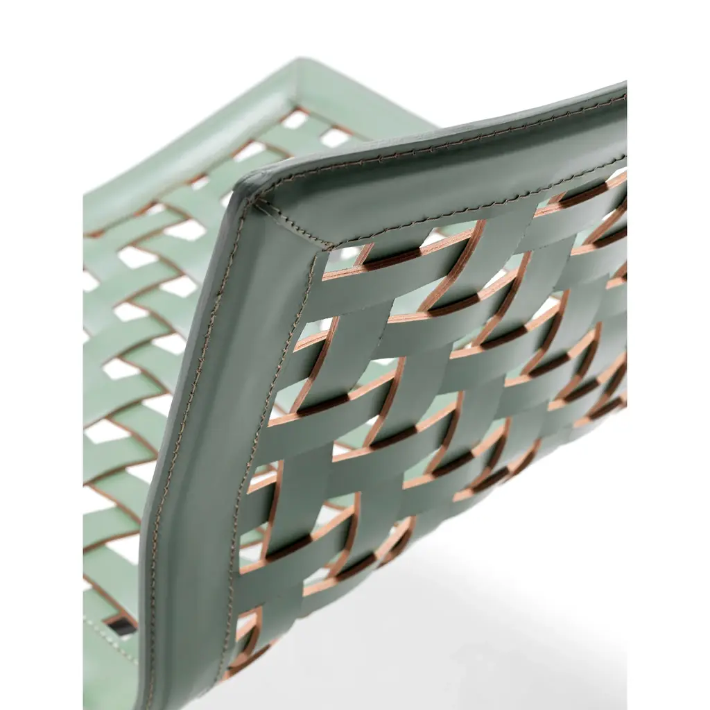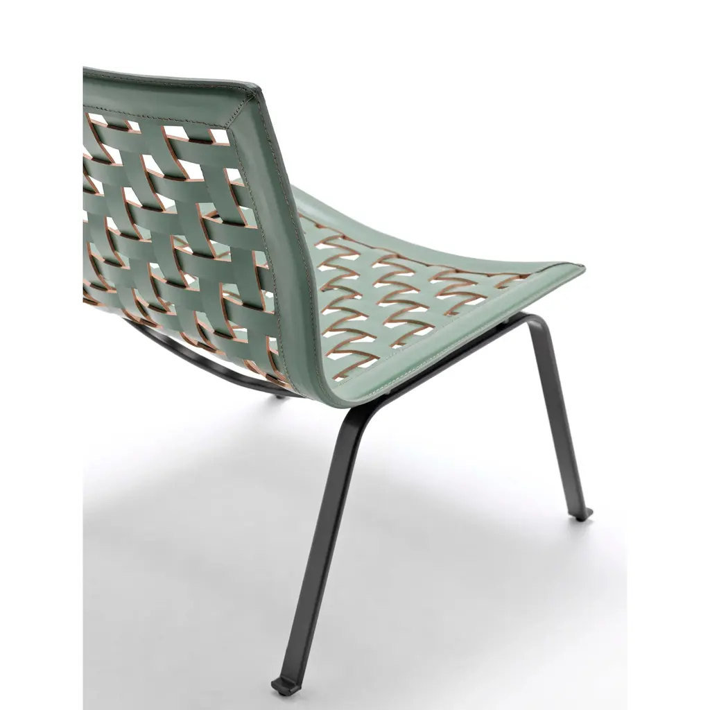 Net W is the lounge chair with a steel structure in various Fasem finishes, featuring a seat and backrest entirely made of woven full-grain Fasem leather. The visible cut of the weaving highlights the quality of the full-grain Fasem leather and is expressed in warm chromatic tones. The handcrafted nature, combined with the high quality of the material, makes it a striking chair with immediate recognition.
