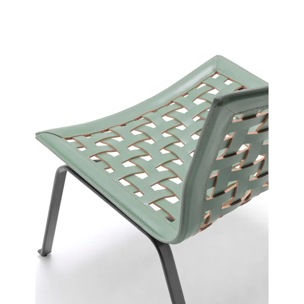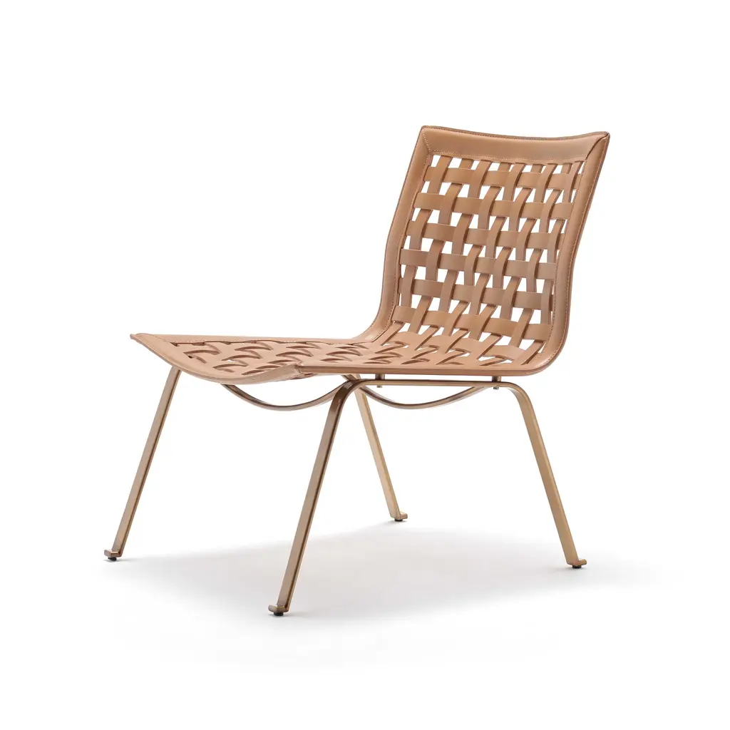 Net W is the lounge chair with a steel structure in various Fasem finishes, featuring a seat and backrest entirely made of woven full-grain Fasem leather. The visible cut of the weaving highlights the quality of the full-grain Fasem leather and is expressed in warm chromatic tones. The handcrafted nature, combined with the high quality of the material, makes it a striking chair with immediate recognition.