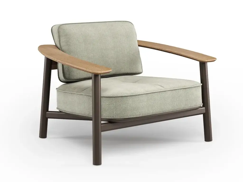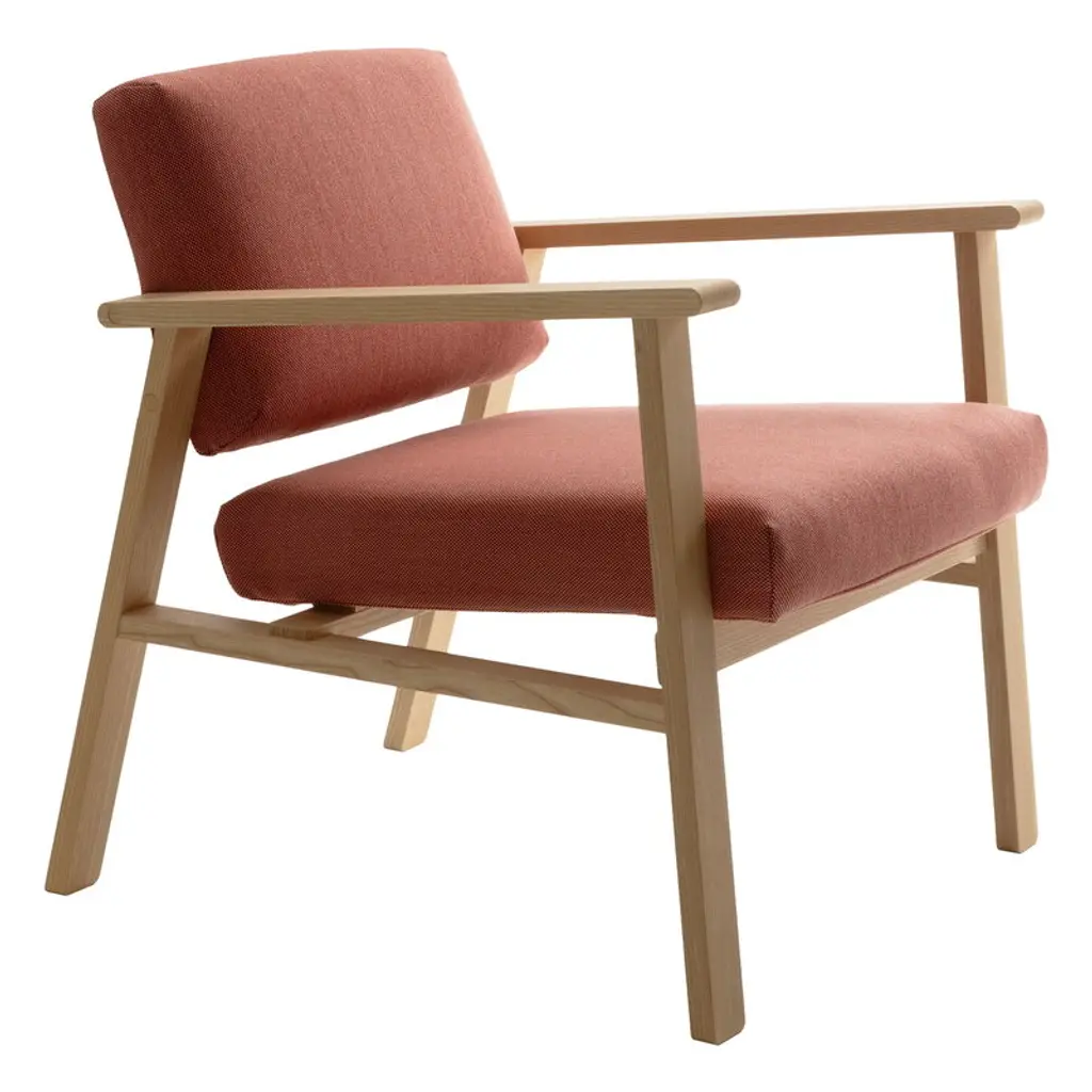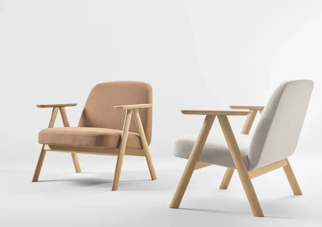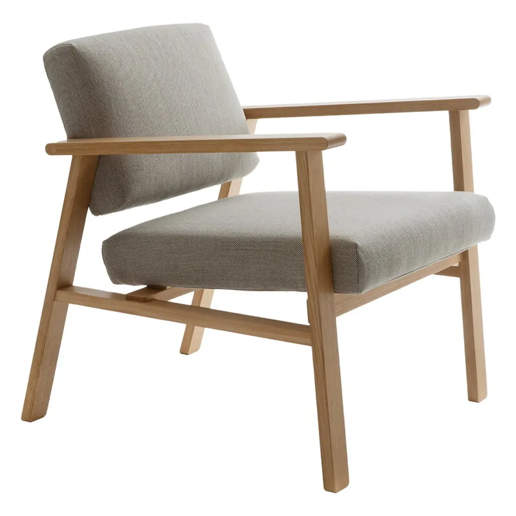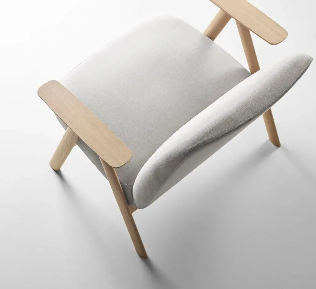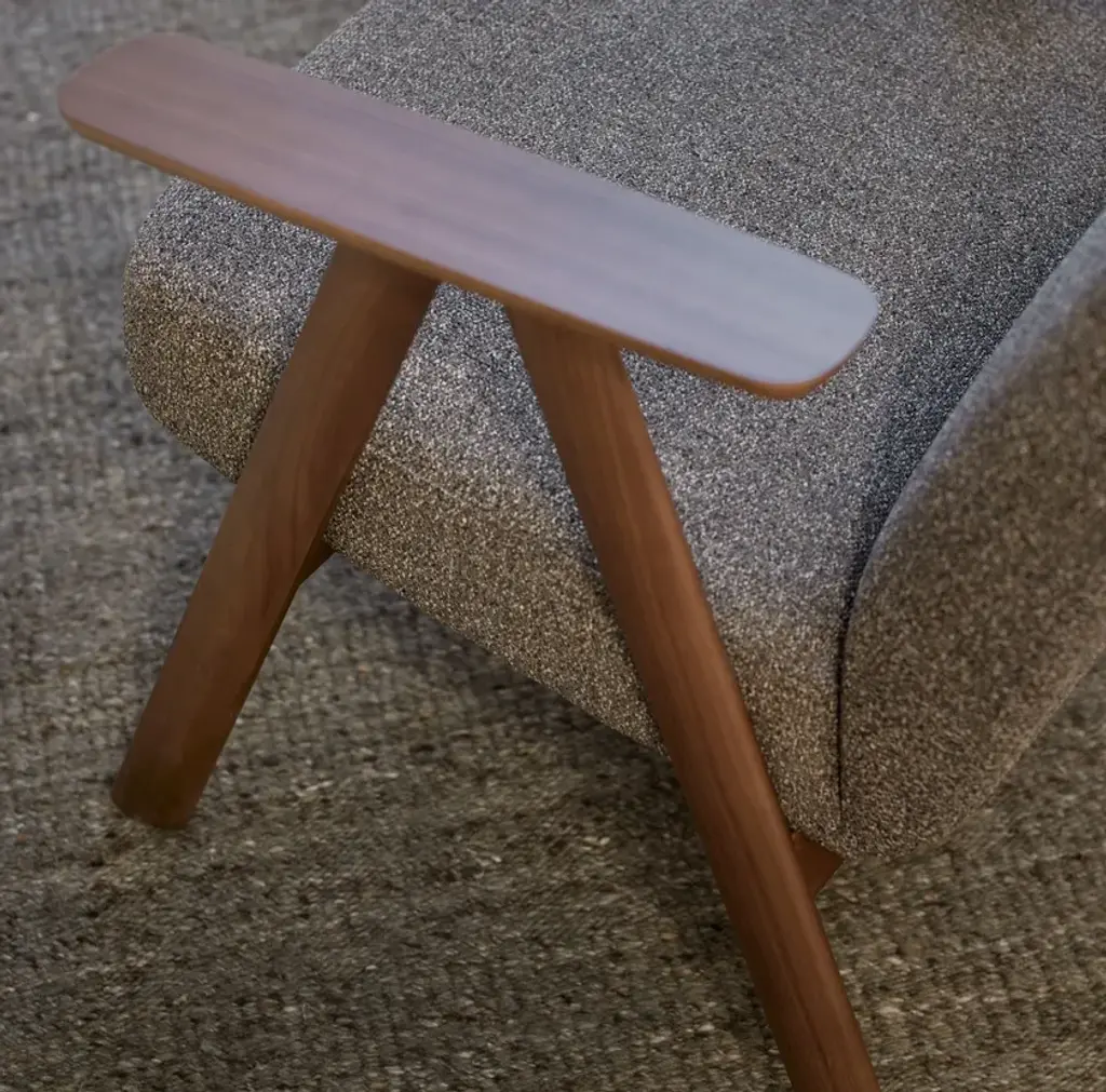Leku is an armchair that conveys comfort above all else, through the shapes of the wooden arms and legs, and the density of the seat and back. Its timeless design, and the option to finish its arms and legs in different tones of oak and walnut wood, mean that it can blend into rooms with different styles and functions, from the living room of a home to the lobby of a hotel.