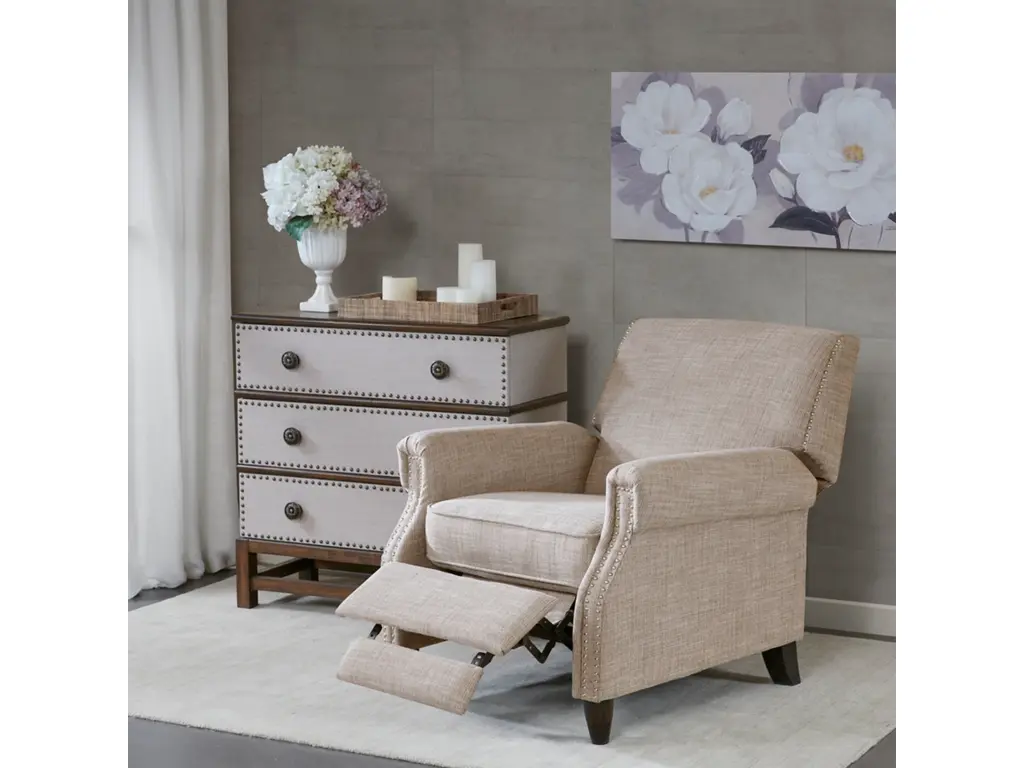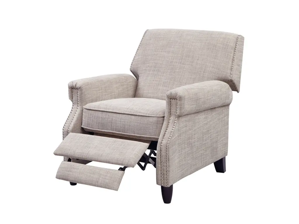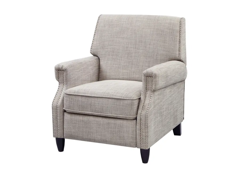 Add a classic update to your living space with this sumptuous recliner. With its high-density foam filling and a solid wood frame and legs, it provides exceptional comfort and support. Silvertone nailheads accent the chair for an elegant touch, while the reclining feature makes it easy to kick back and relax. The recliner's classic design spotlights a style that's sure to become a cozy focal point in your home.