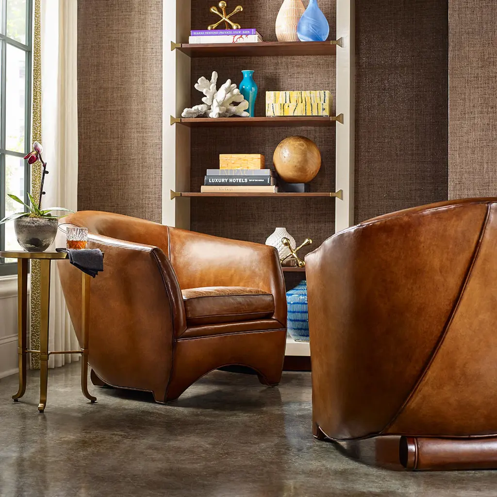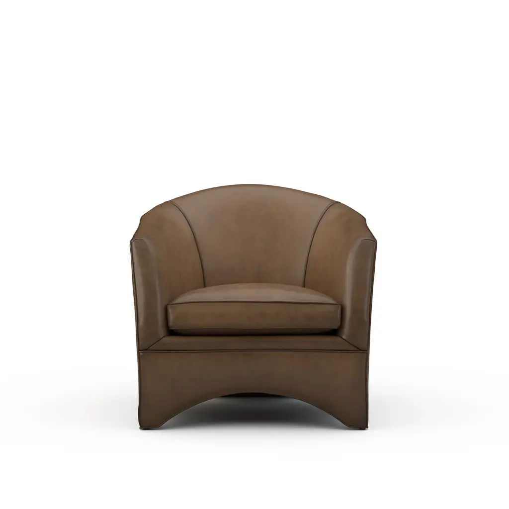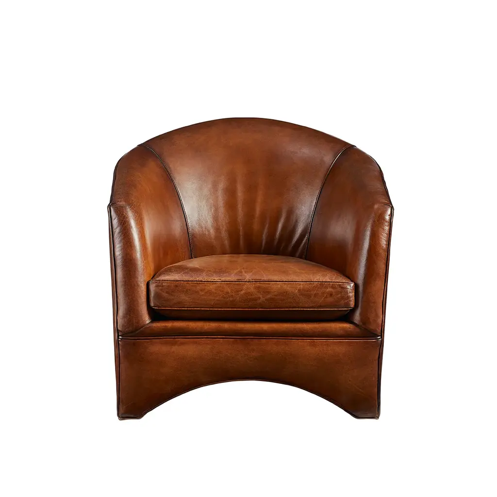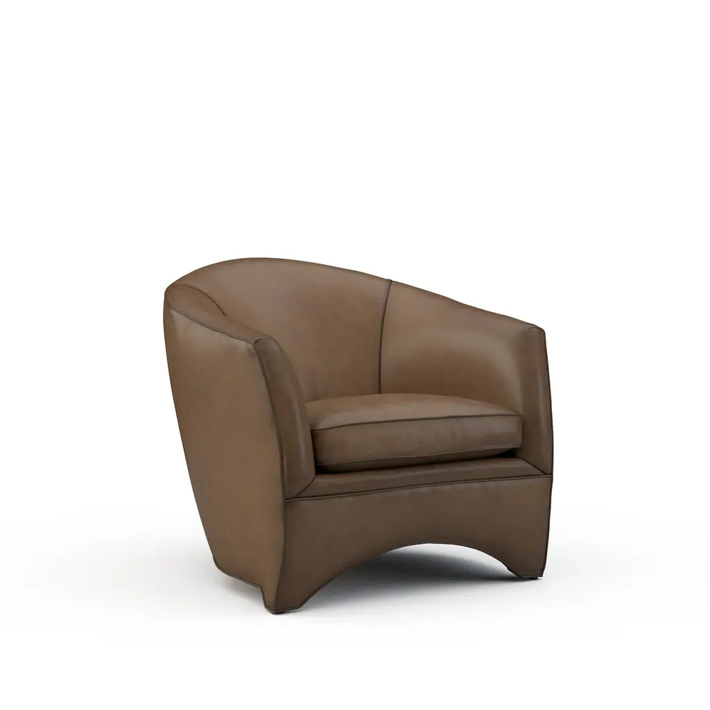 The Leo collection also includes a sofa (sold separately). Ships In 8-10 Weeks Tight back One loose seat cushion As Shown Fabric: Sauvage Saddle As Shown Finish: Modern Walnut This product can be special ordered in additional leathers, finishes, and cushion fillings. Click here to email us for for additional information about special ordering.This image is for illustrative purposes only. The colors shown are accurate within the constraints of lighting, photography, and the color accuracy of your screen.Leather is an imperfect product with shade variations a very real possibility. Lillian August will not be held responsible for matching any colors to your existing decor, or any shade variances inherent with all leather products.