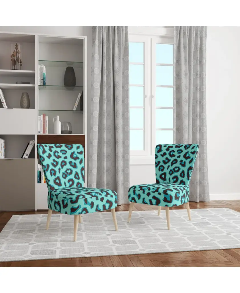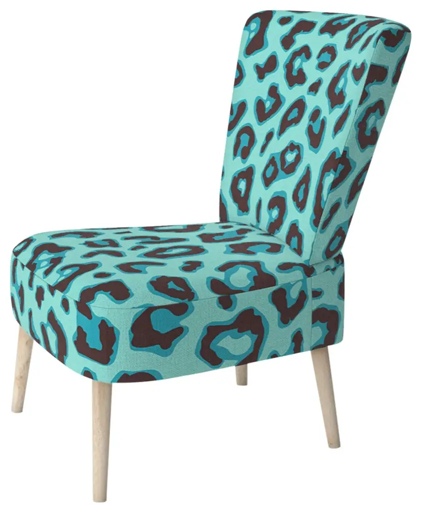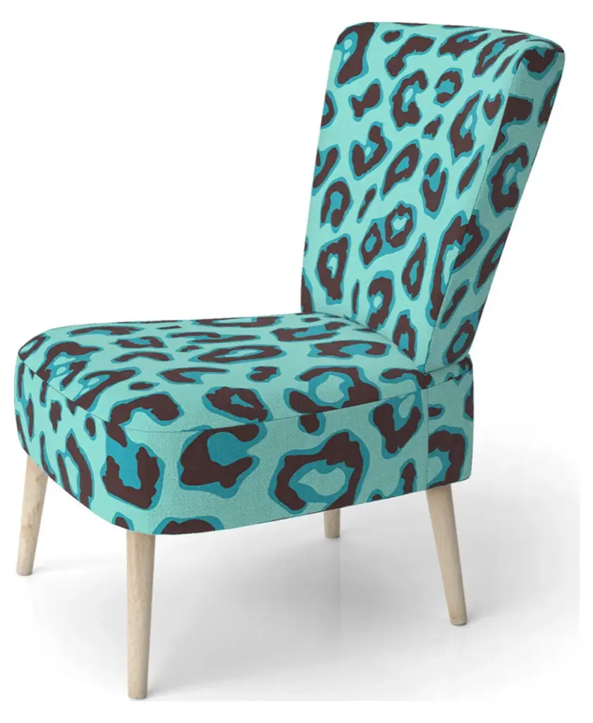Add a beautiful accent to any room with this Leopard Fur accent chair. Our beautiful accent chairs are a great way to add comfort and style all at the same time. All our chairs are printed using the richest colors stemming from high density Italian ink and sewn using the softest fabrics. Enjoy our sturdy hardwood frame chairs in multiple designs and colors.1 Accent chair includedFoam Filled SeatingWood FrameArm Style: ArmlessPolyester upholsteryRequires AssemblyColor : BlueDimensions :32.5in high x 27.5in deep x 22.5in wide
