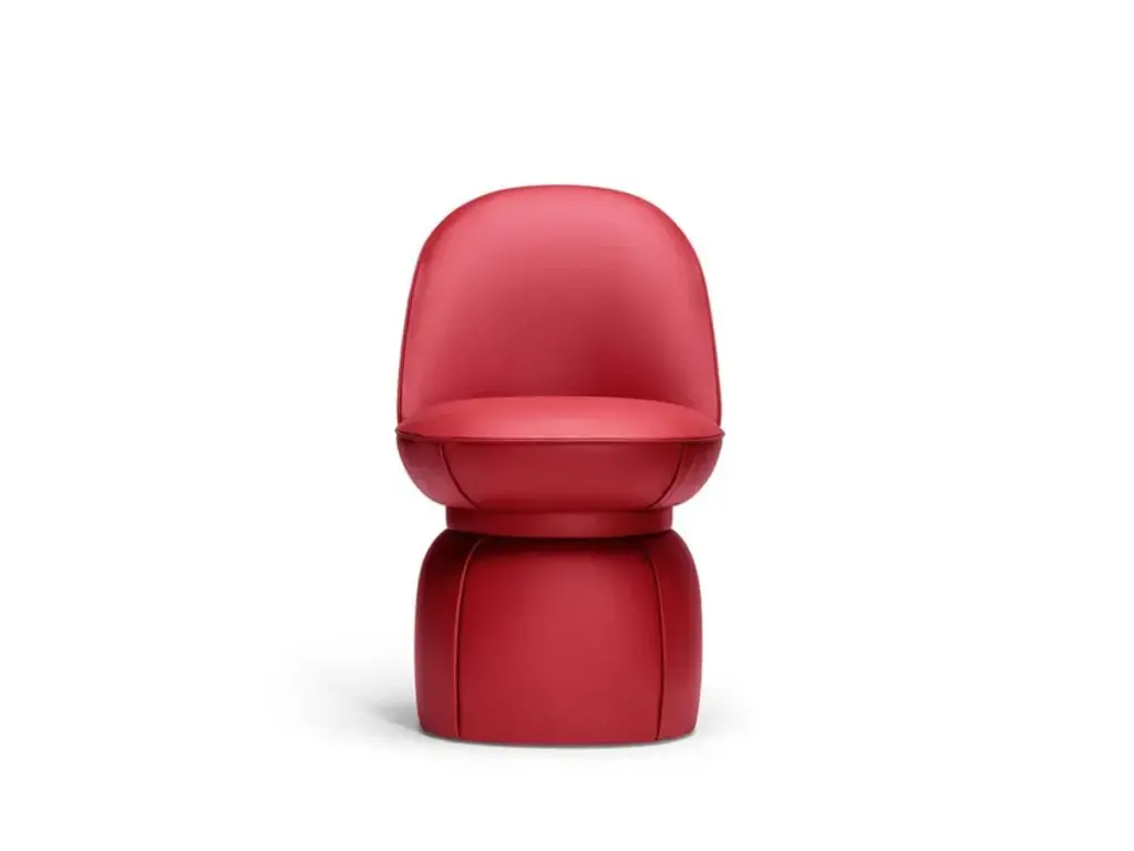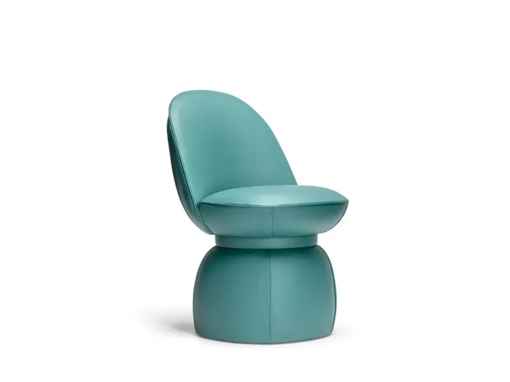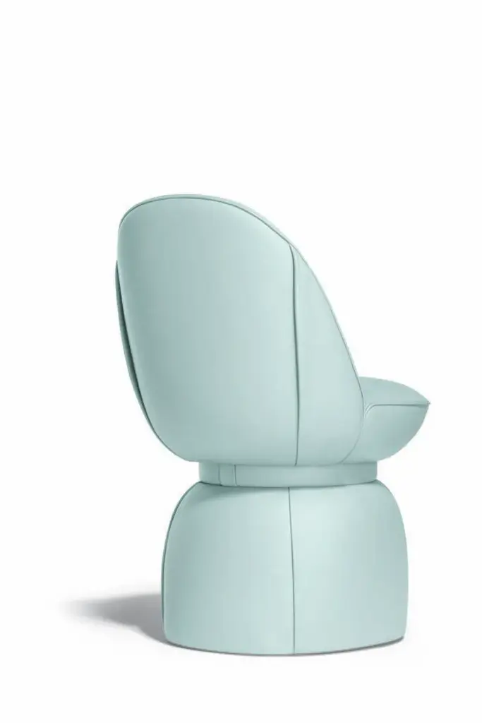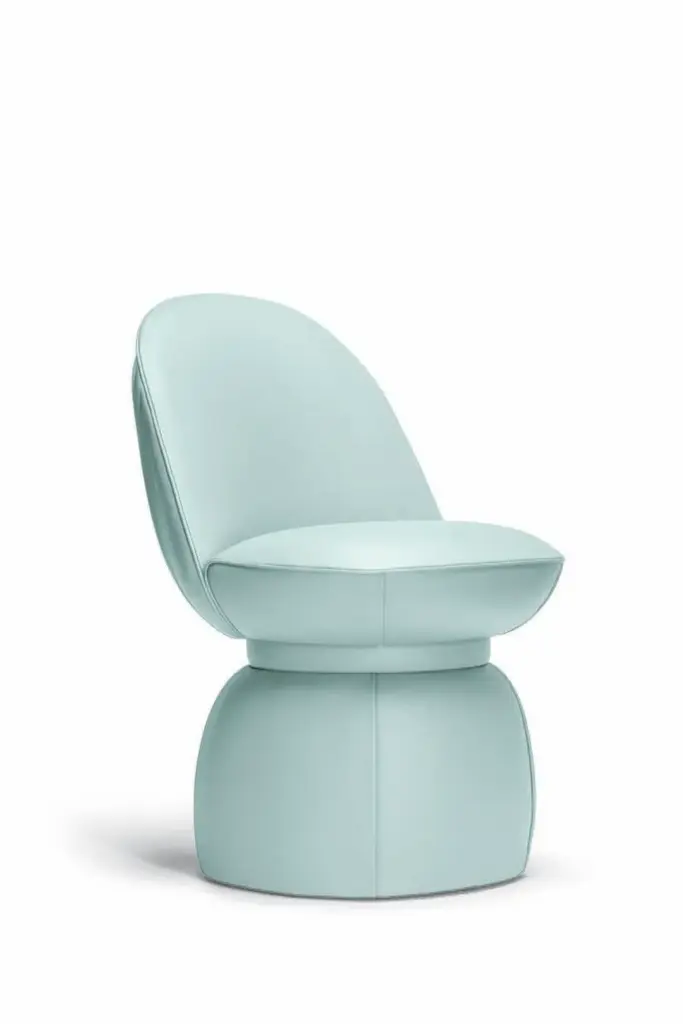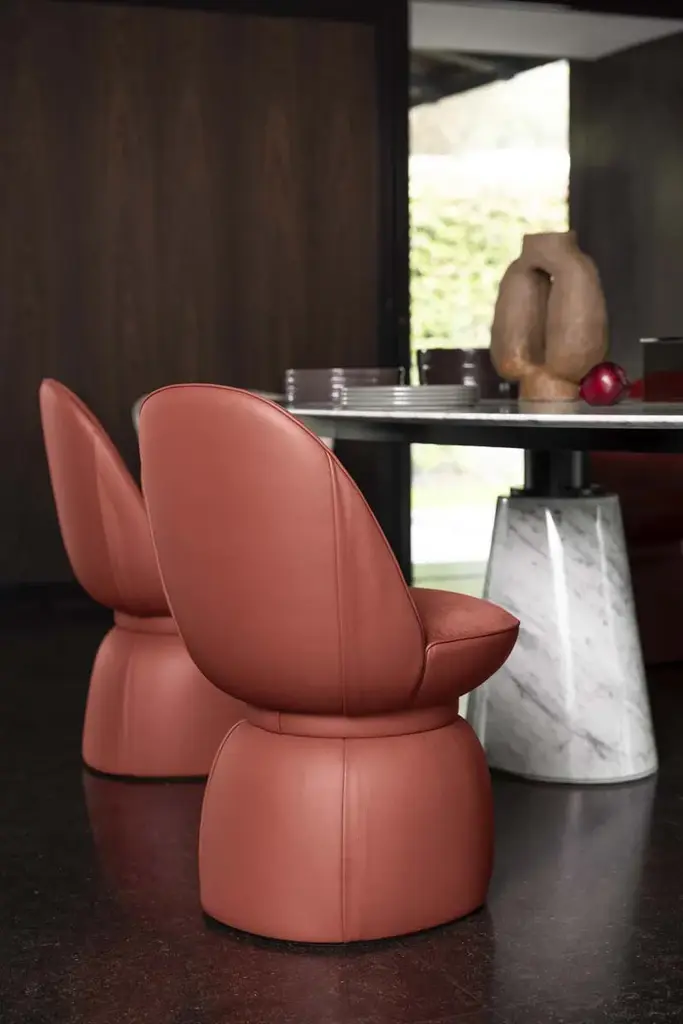 The structure of the Leplì padded chair comes with birch and poplar plywood, with kraft cardboard padding. The backrest structure is made of Polimex® and poplar plywood. The padding is made of polyurethane foam and polyester wadding. The Leplì design chair comes in various combinations of leather and fabric. The base can be fixed, made of MDF painted black and scratch-resistant; rotatable, with ‘return’ mechanism that allows a 360° rotation with return to the initial position; and with wheels, with 5 pivoting wheels inserted inside the base.