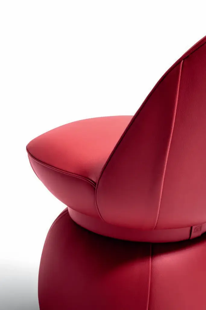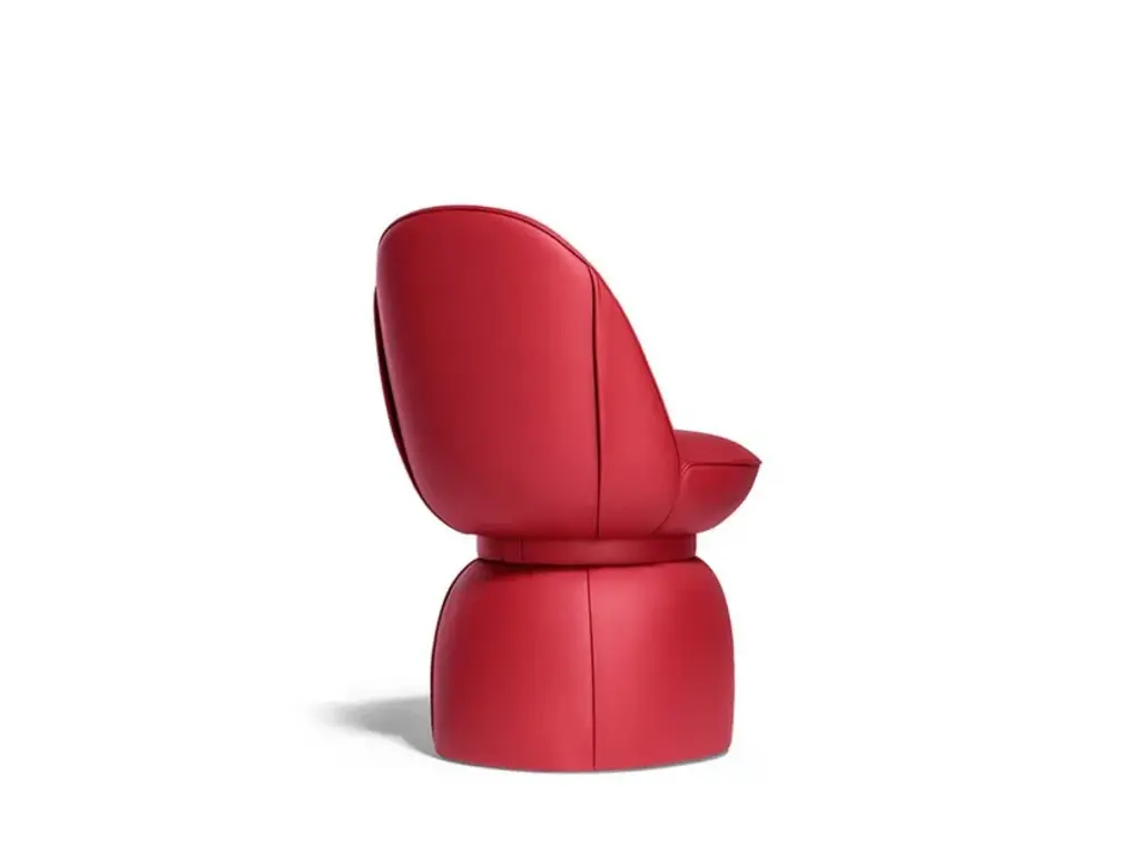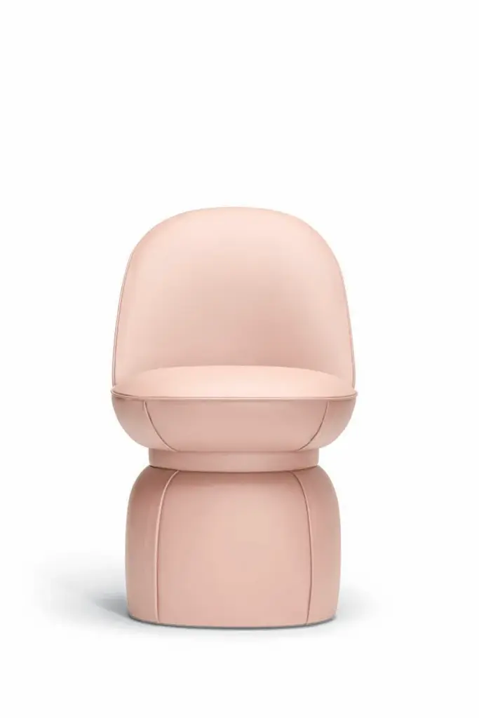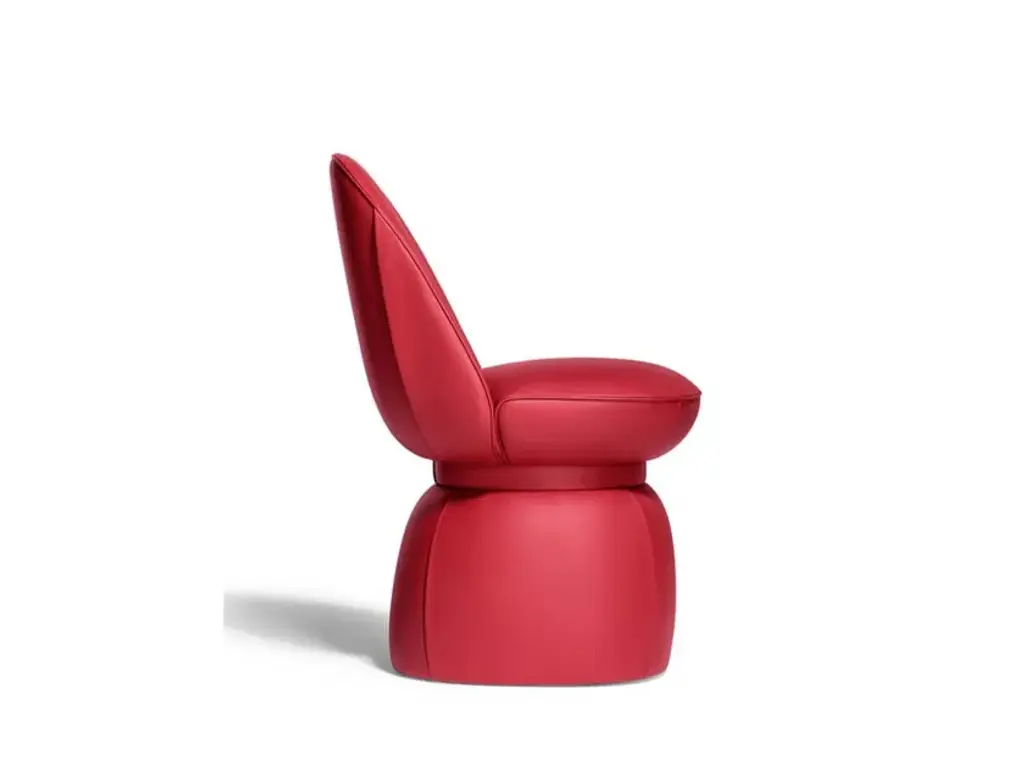The structure of the Leplì padded chair comes with birch and poplar plywood, with kraft cardboard padding. The backrest structure is made of Polimex® and poplar plywood. The padding is made of polyurethane foam and polyester wadding. The Leplì design chair comes in various combinations of leather and fabric. The base can be fixed, made of MDF painted black and scratch-resistant; rotatable, with ‘return’ mechanism that allows a 360° rotation with return to the initial position; and with wheels, with 5 pivoting wheels inserted inside the base.