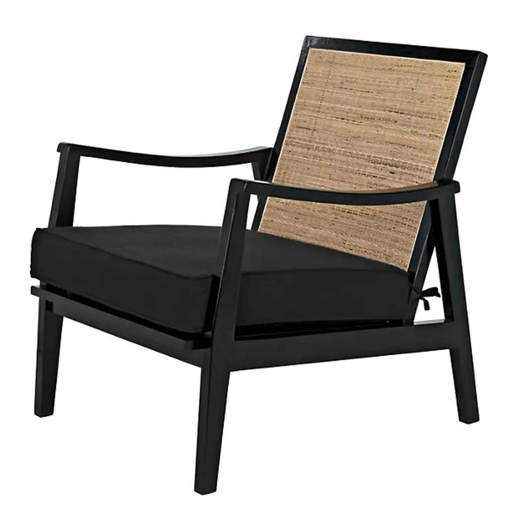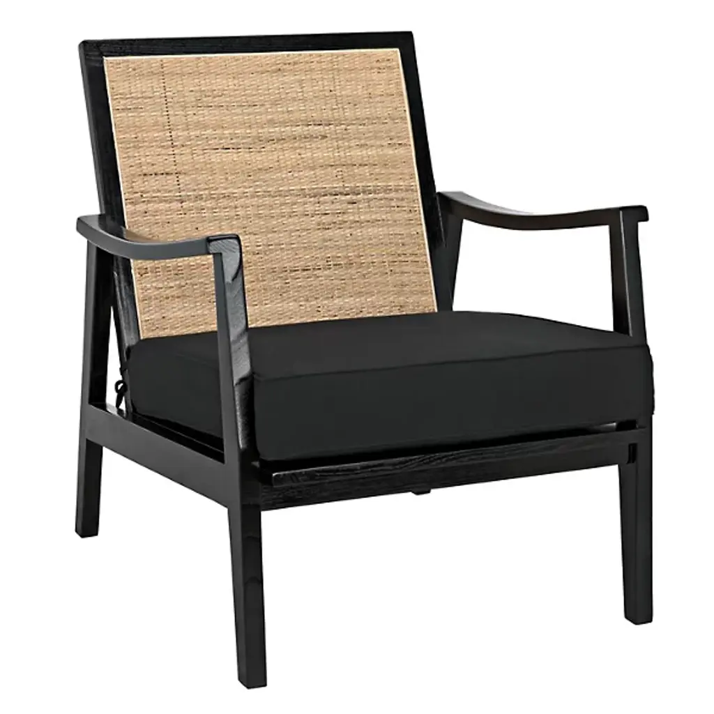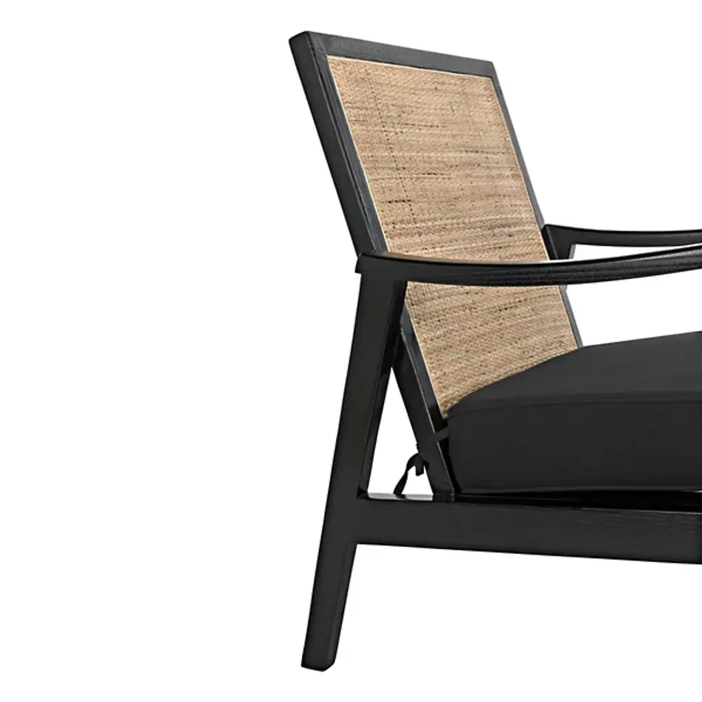 The Lichtenstein Lounge Chair from Noir embodies both mid-century modern and artisanal modern styles, creating a distinct blend of simplicity and craftsmanship. Its black frame effortlessly complements the natural woven front and back panel, adding a touch of retro elegance to your decor. Complete with a comfortable black cotton seat cushion, this chair offers both style and coziness. Crafted from Sungkai, Mindi, and Peeled Rattan, it makes a durable and stylish addition to any living space, elevating its surroundings with a tasteful fusion of design elements, promising not just a chair but a statement piece.