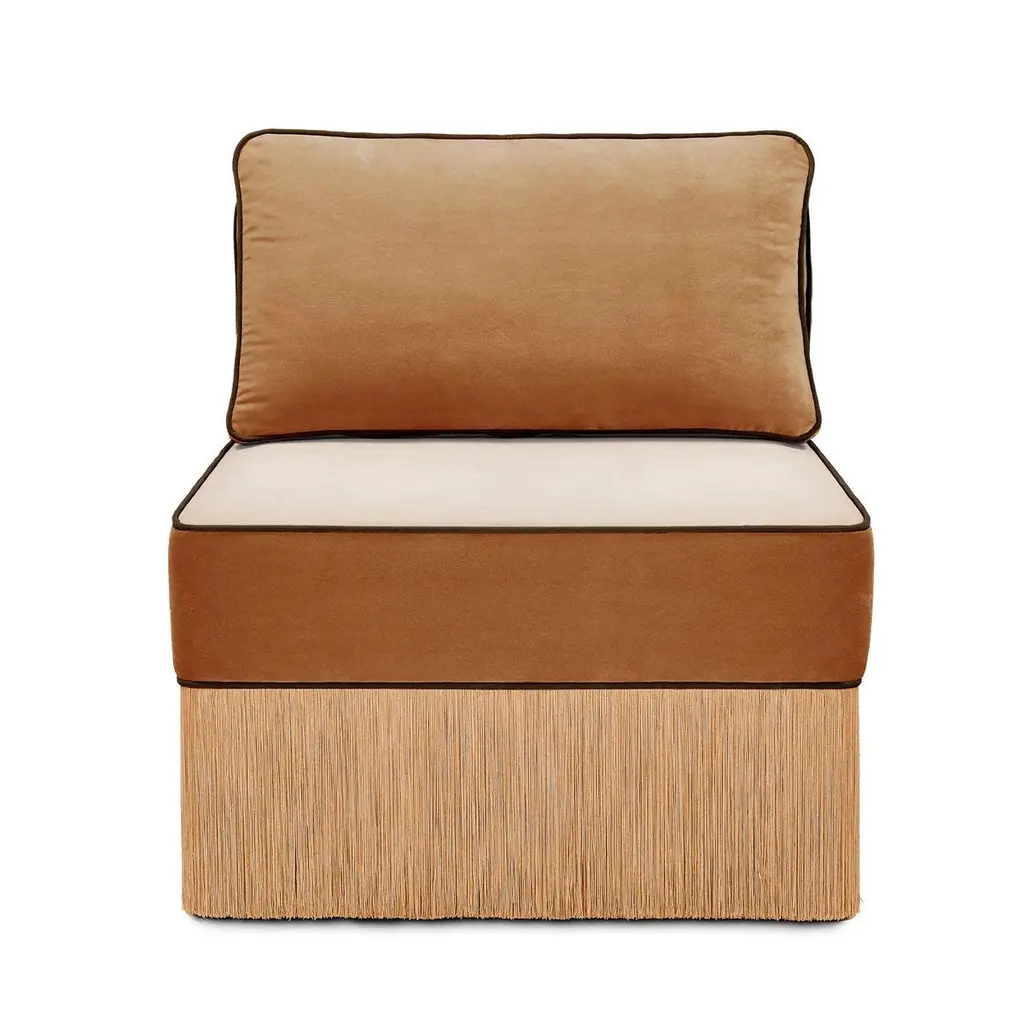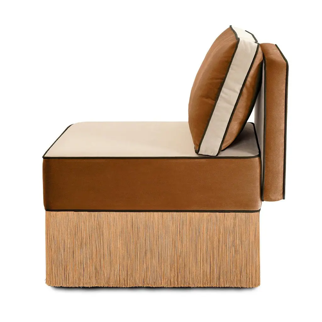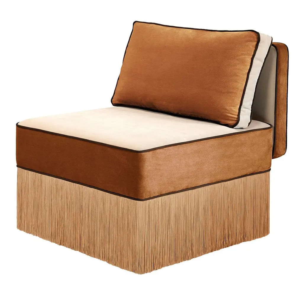 Lilli Modular Beige And Cognac Fabric With Fringes Lounge Armchair