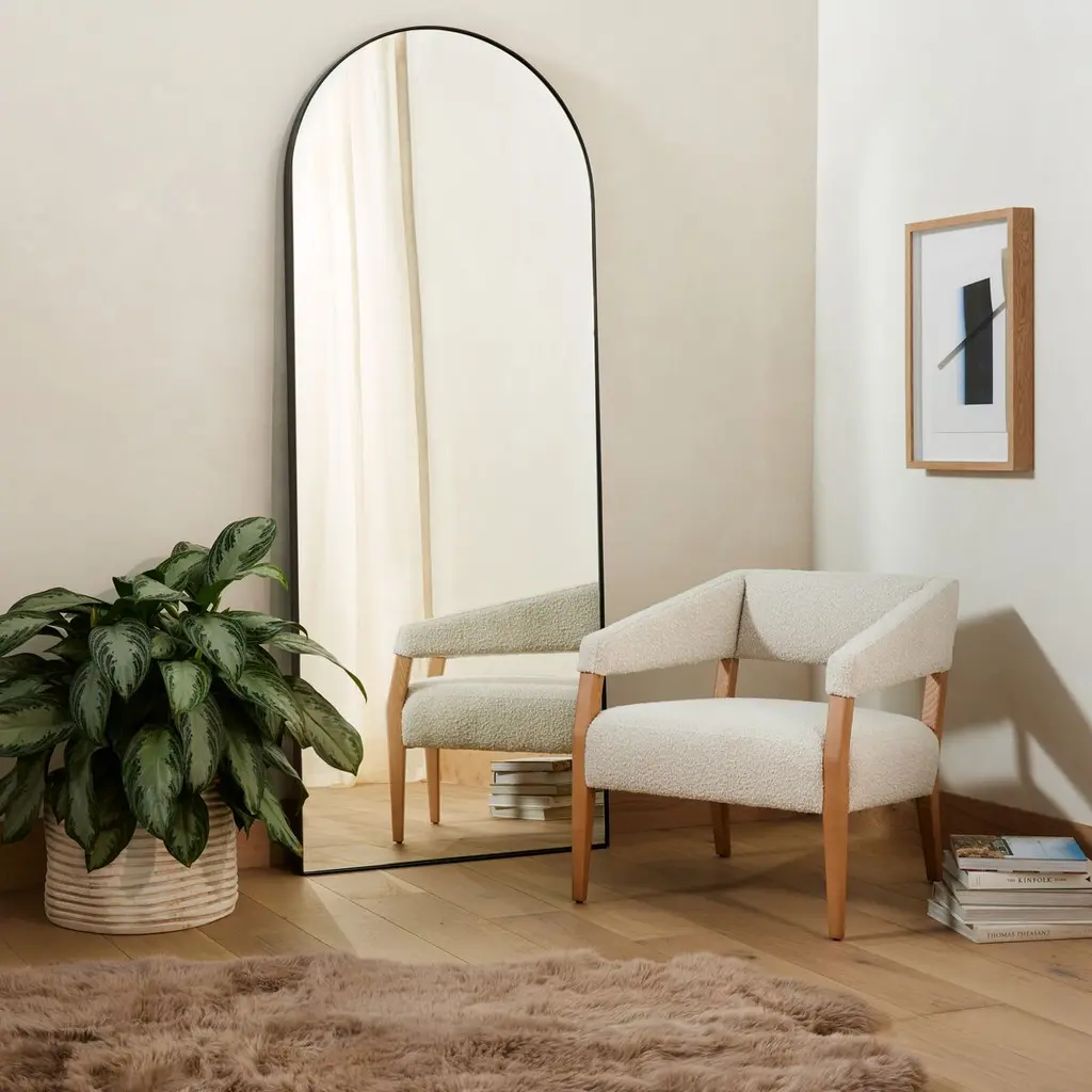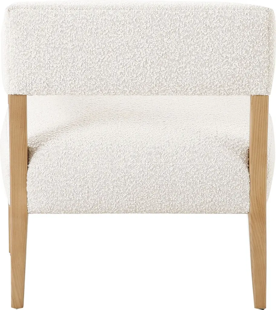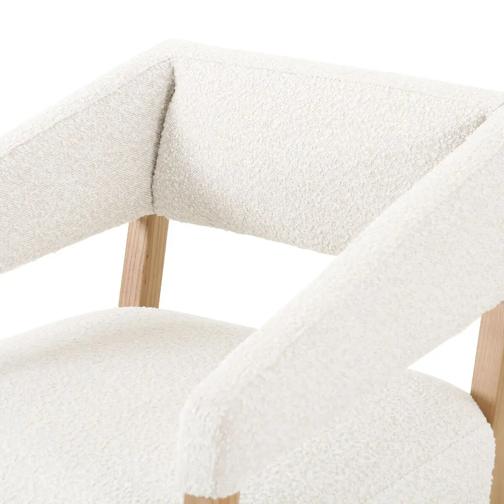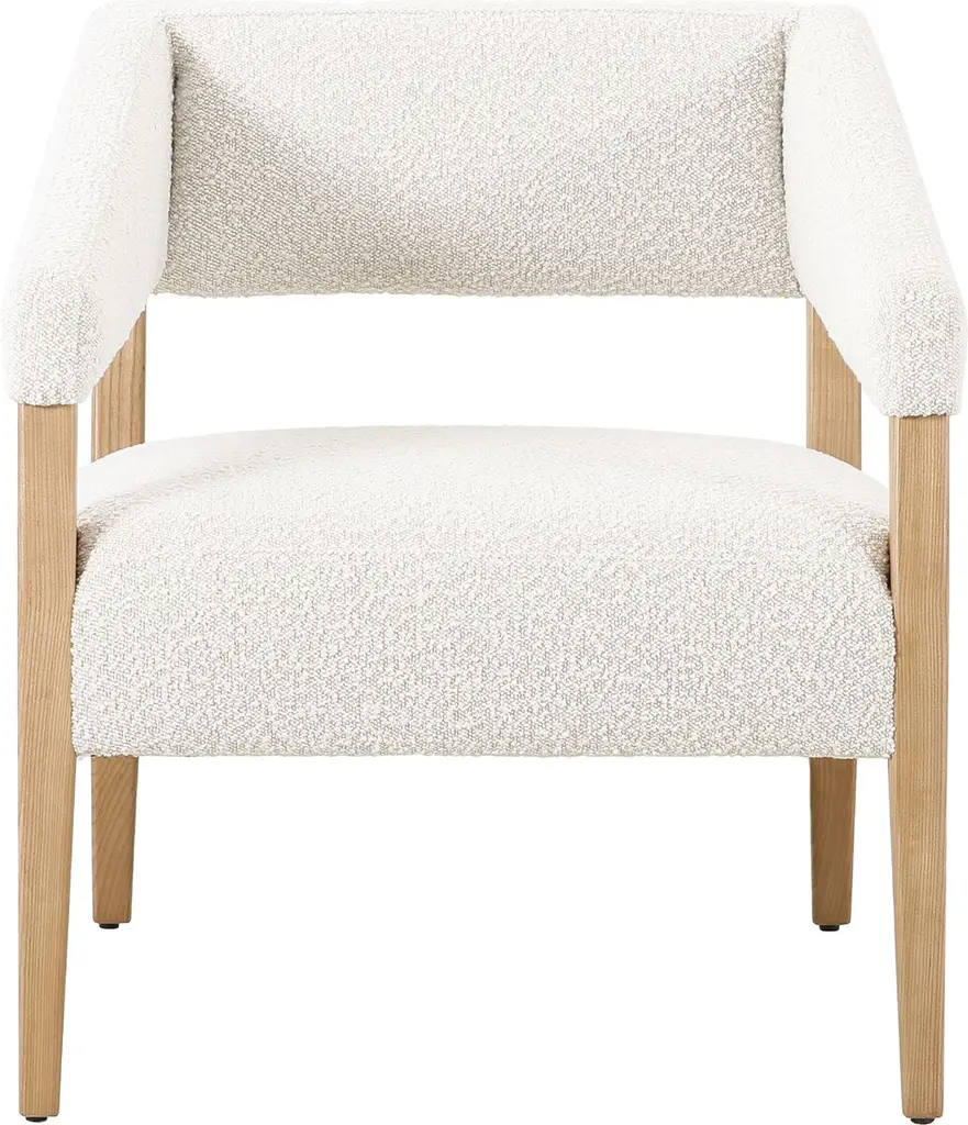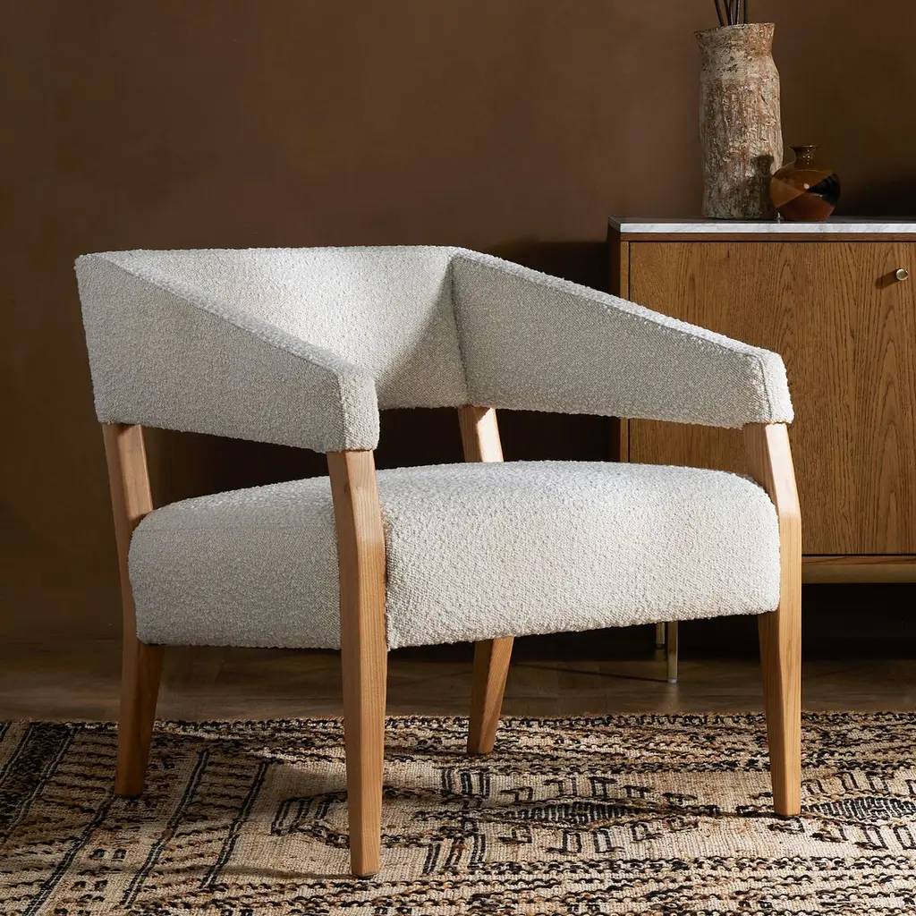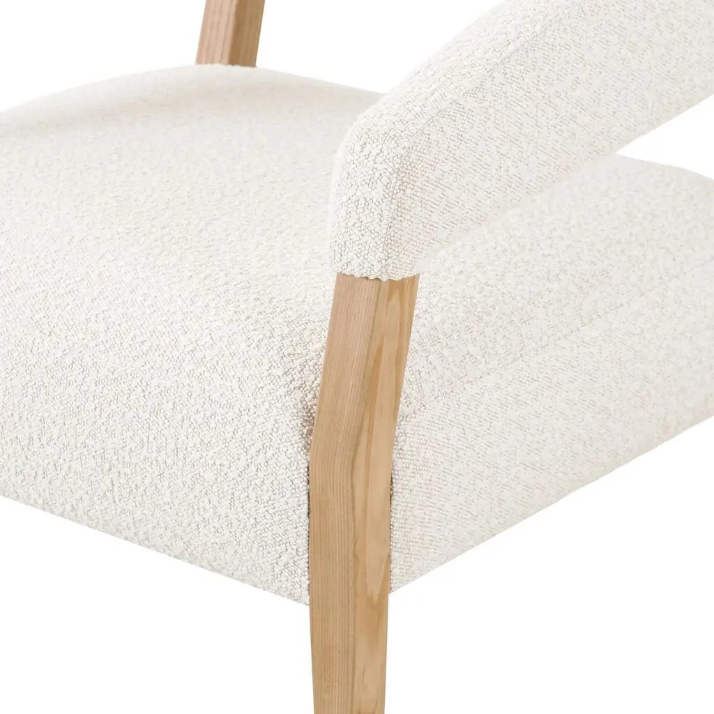 This chair displays Mid-Century Modern influences, yet it's versatile enough to complement a variety of room styles. The frame is crafted of ash, a hardwood so durable, it's used to make baseball bats. The bouclé upholstery provides a textural contrast to the smooth wood.