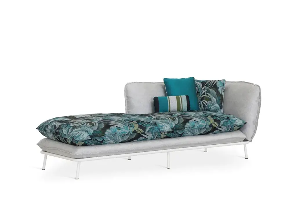 Evocative, romantic, and contemporary, the Lipari lounge chair seduces at first sight. The comfortable back together with the side armrest provides a pleasant support, while the soft padding invites you to relax. The lightweight structure in white lacquered aluminium supports the large seat made of polyurethane foam and water-repellent polyester fibre. The coating is designed for outdoor use, resistant to water, UV rays and salt agents. MaterialsOutdoor chaise longue with matt white painted aluminium structure.Padding in different density polyurethane foam and recyclable outdoor polyester fibre and water-repellent cotton.Coating with water-repellent treatment with high resistance to sunlight and saltiness.Totally removable cover. Sunbed includes a decorative buckle in matt white finish with a belt in outdoor leather.Optional: outdoor cover.