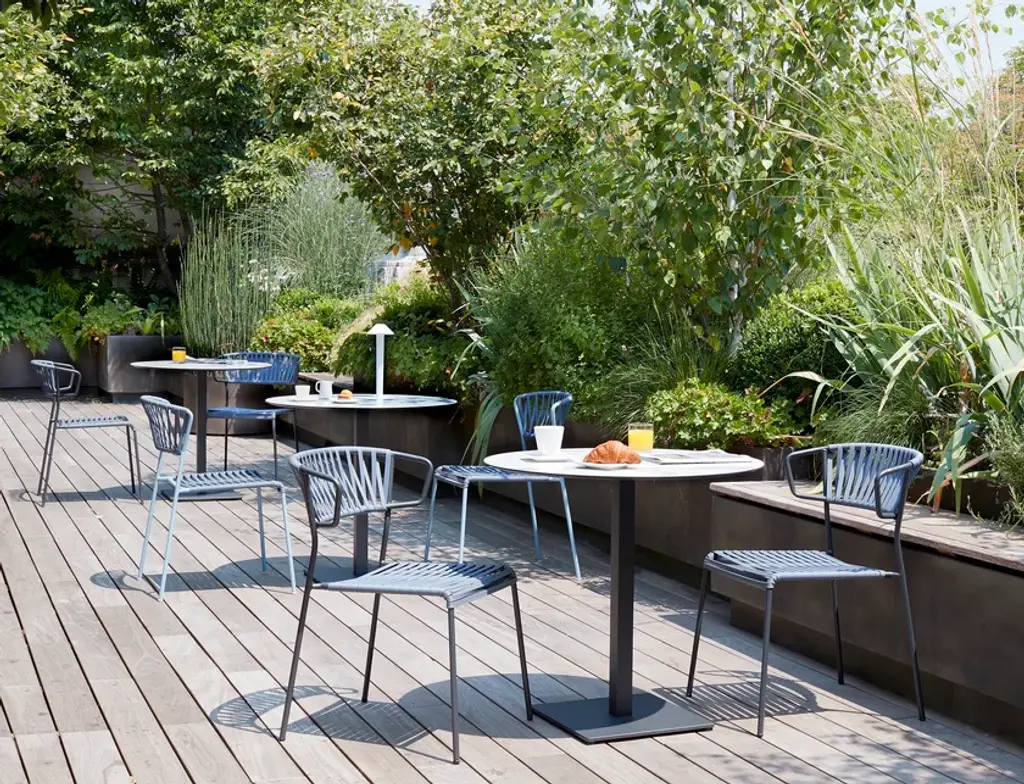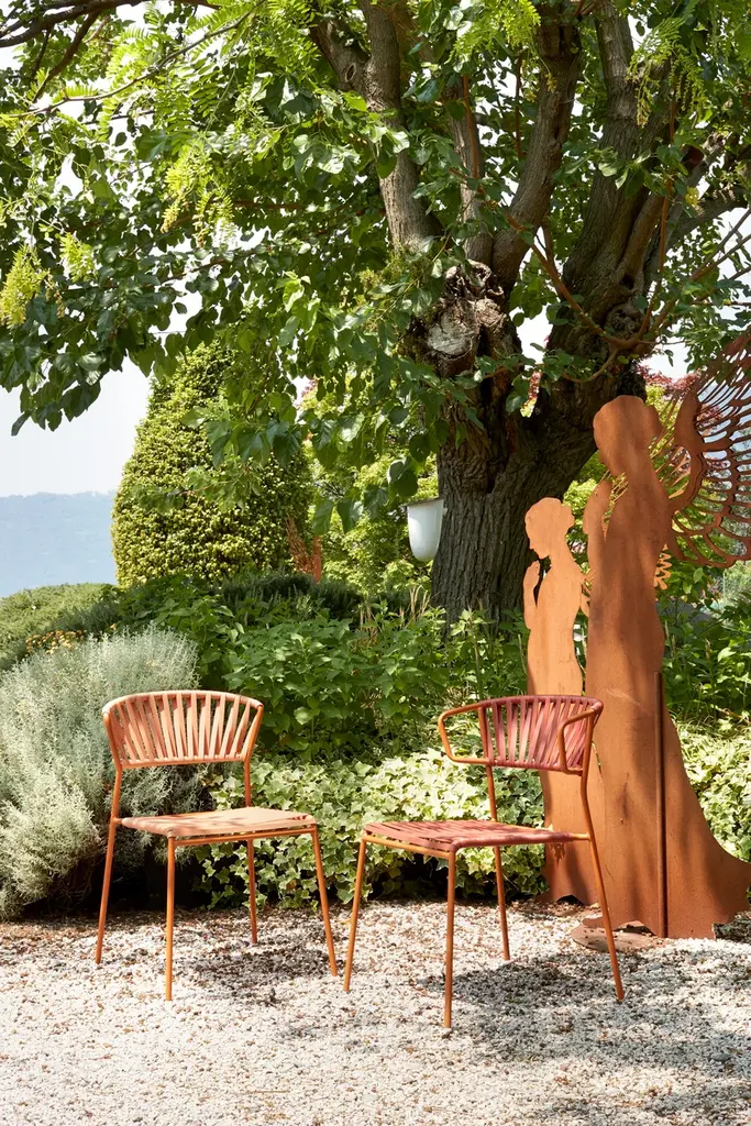 A chair with a cool core, with seat and backrest in PVC wires to make it practical, light to move, and stackable, which reminds us of the gardens of our past. The must-have piece of furniture for outdoor spaces, informal yet well-finished, made refined by the structure/frame combination. Designed for contract environments, it gives a touch of summer carefreeness to bars and restaurants along the sea. Lisa reflects the sophisticated tone that infused interior decor in the ‘50s and ‘60s. Its shape inspires a sense of reassuring warmth, retro charm and memories of home. The enveloping and comfortably upholstered seatback and seat make Lisa the ideal complement to a living room or contract setting. The lightweight but strong metal structure heightens the visual sense of lightness. Lisa comes in two versions: chair, armchair and stool.