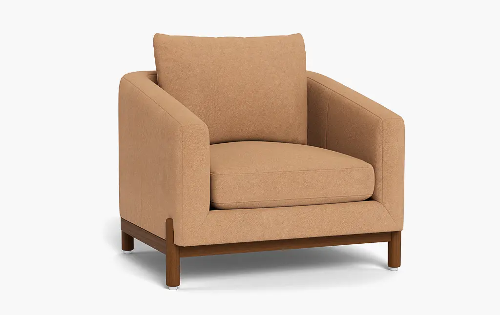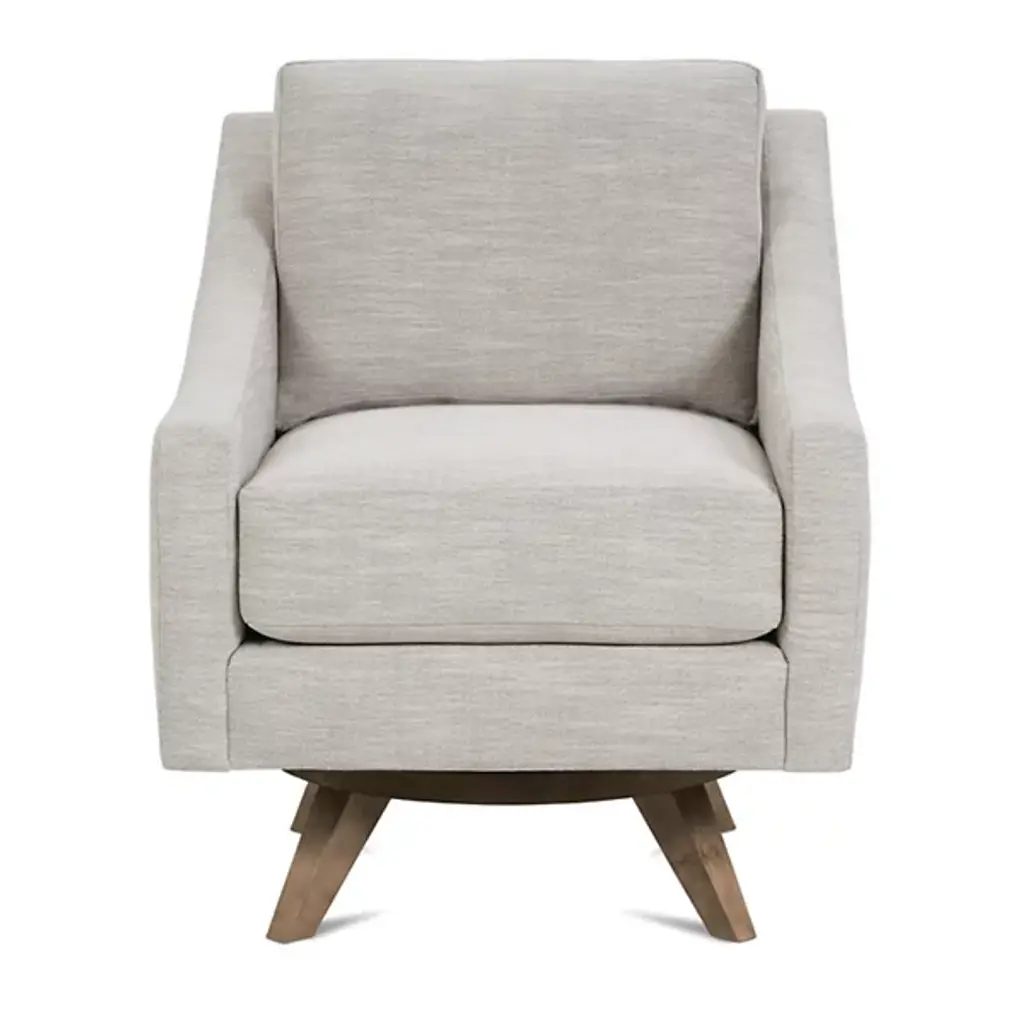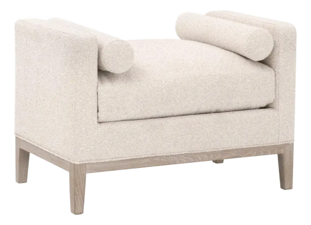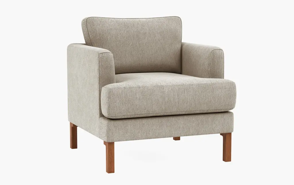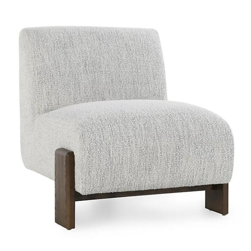 Luxuriate in the embrace of our Lisant accent chair. Expressing the essence of Brazilian modernist design, the chair indulges with plush, oversized forms. The bold solid oak frame wraps around the back, securing inset rear legs that anchor the chair's mold-breaking silhouette. Generously proportioned cushions spill over the armrest and extend beyond the frame to create a deep-seated, relaxing haven. The taupe fabric furnishes cozy texture and subtle pattern thanks to the captivating grid created by two-toned yarn.