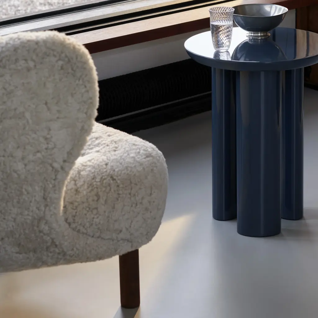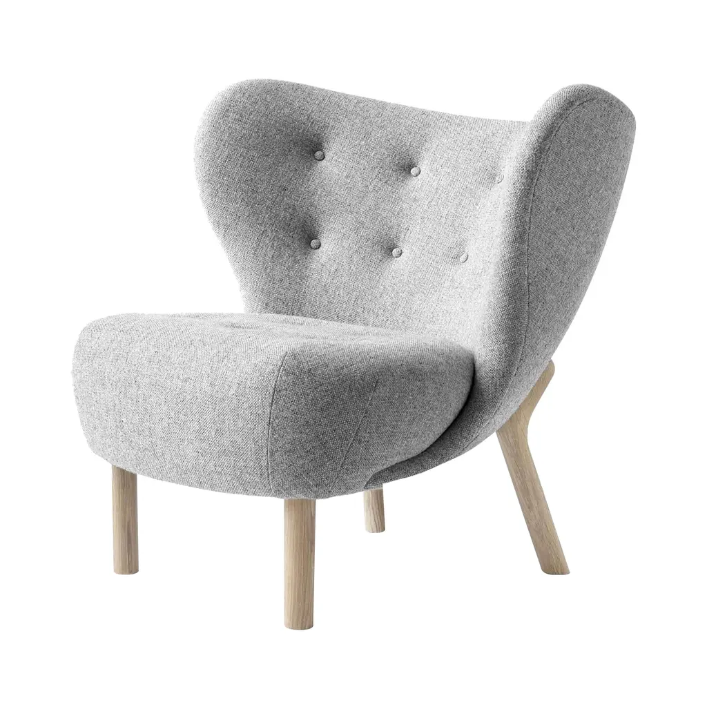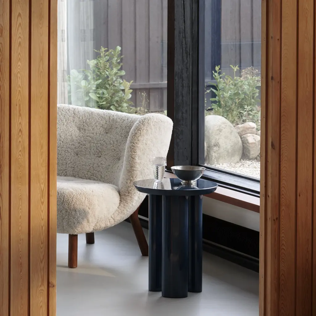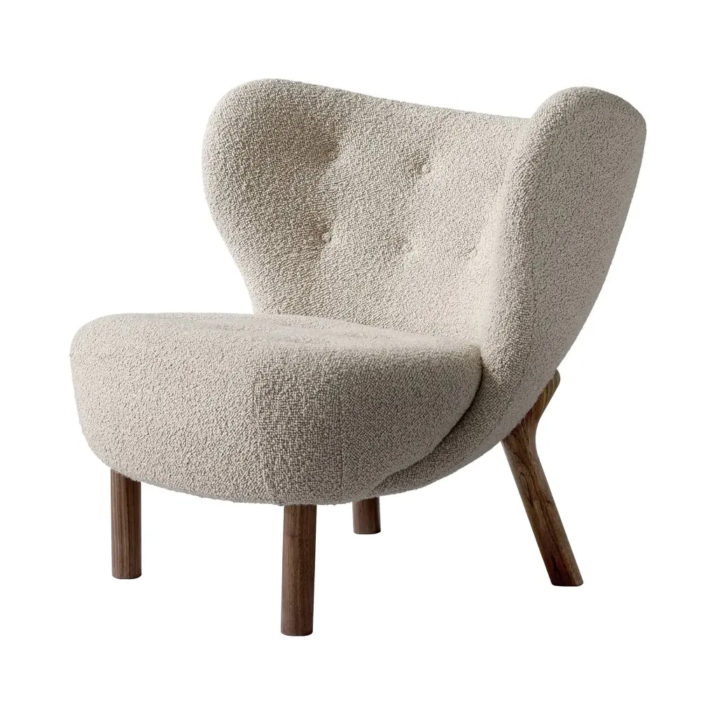 Long a “grail” for collectors, &Tradition reissues architect Viggo Boesen’s 1938 Little Petra. Though few of this coveted lounge chair were produced originally, the chair is a prime example of “funkis,” a Scandinavian take on functionalism and purpose in design. Wood legs in white oiled oak or walnut pair organically with luxe sheepskin or wool upholstery. Named after Viggo’s mother-in-law, Little Petra is smallish in scale but provides surprisingly roomy comfort, making it as perfect in a bedroom as salon. Pair it with the Little Petra ATD1 Pouf for added comfort.