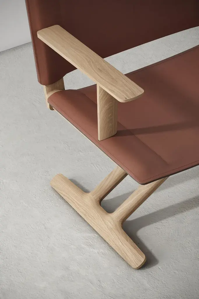 The concept of a folding chair is revisited in an elegant, timeless profile meticulously crafted in wood and saddle leather. Lodge design allows for ease of use for all occasions and voyages. PRODUCT MATERIALOak frame / Leather seat & backrest