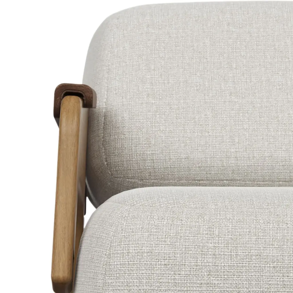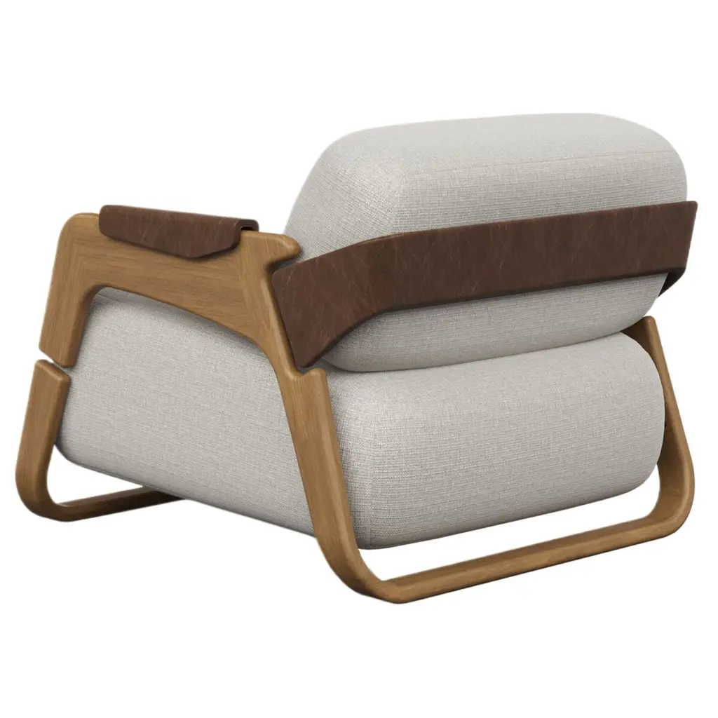 Elevate your living space with this modern lounge chair, featuring a sleek wooden arm that seamlessly blends style and comfort. The luxurious armrests add a touch of sophistication, ensuring a cozy seating experience. Its contemporary design effortlessly complements any decor, making it a perfect statement piece for your home. Crafted with attention to detail, this chair combines functionality and elegance for the ultimate relaxation spot. Features: Fully Assembled, Meticulous craftsmanship and stability, Refined wooden frame for timeless elegance, Detailing integrated into the wood for added luxury, Thick, plush seat for optimal comfort, Timeless design making this design a focal point in any space for years to come.