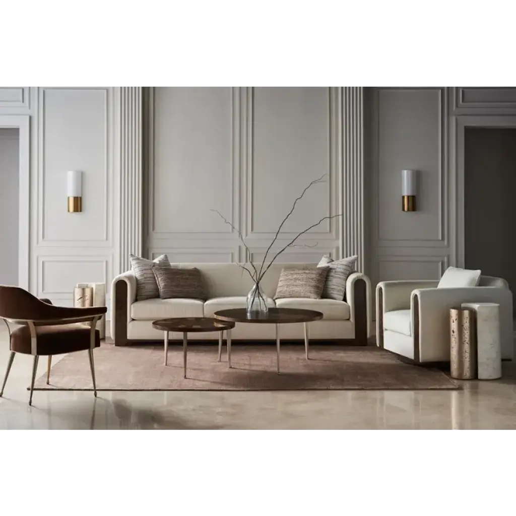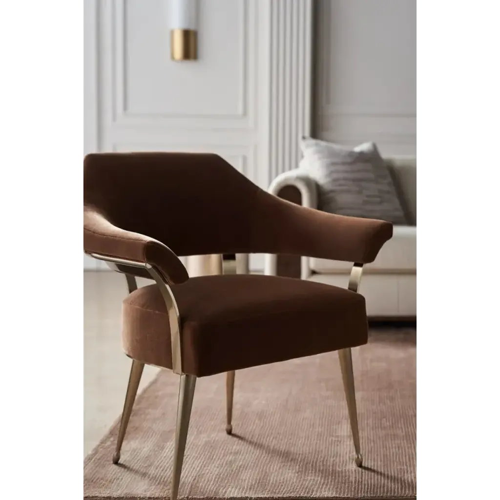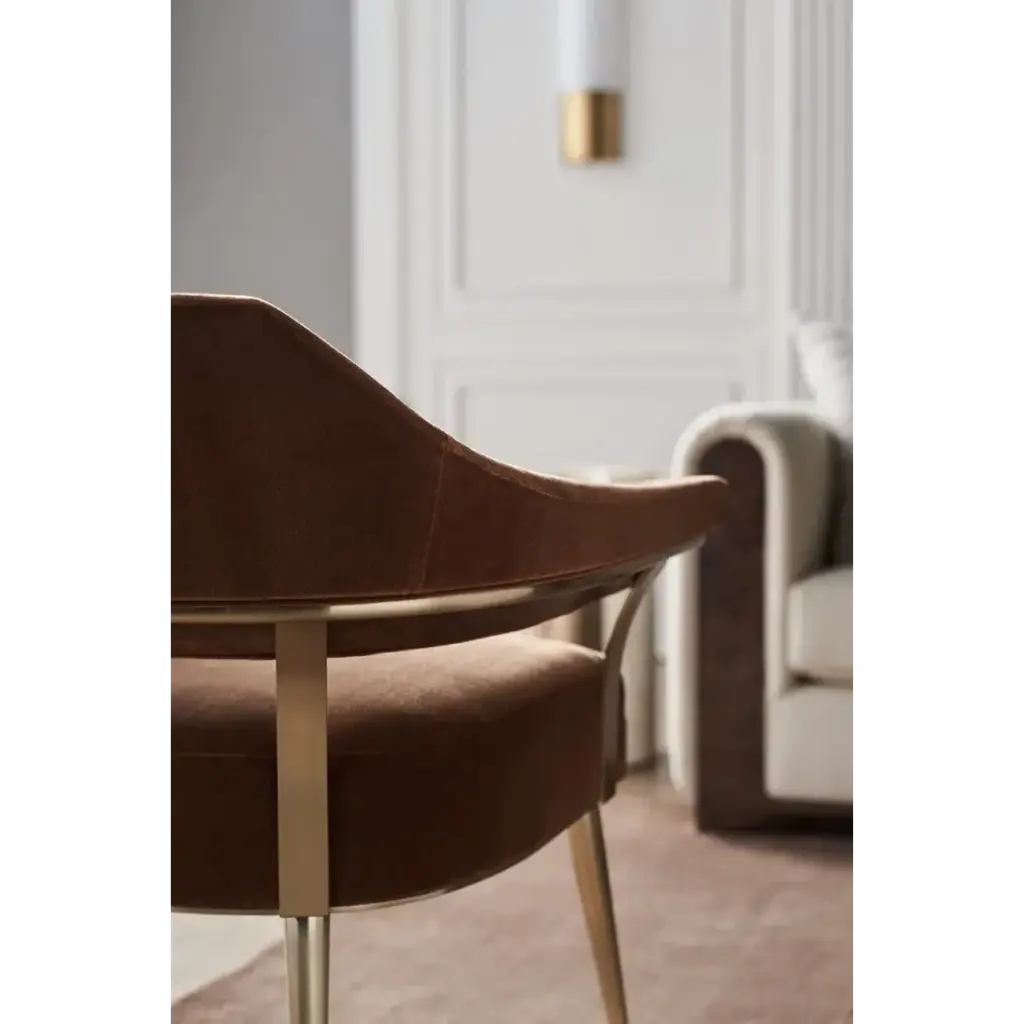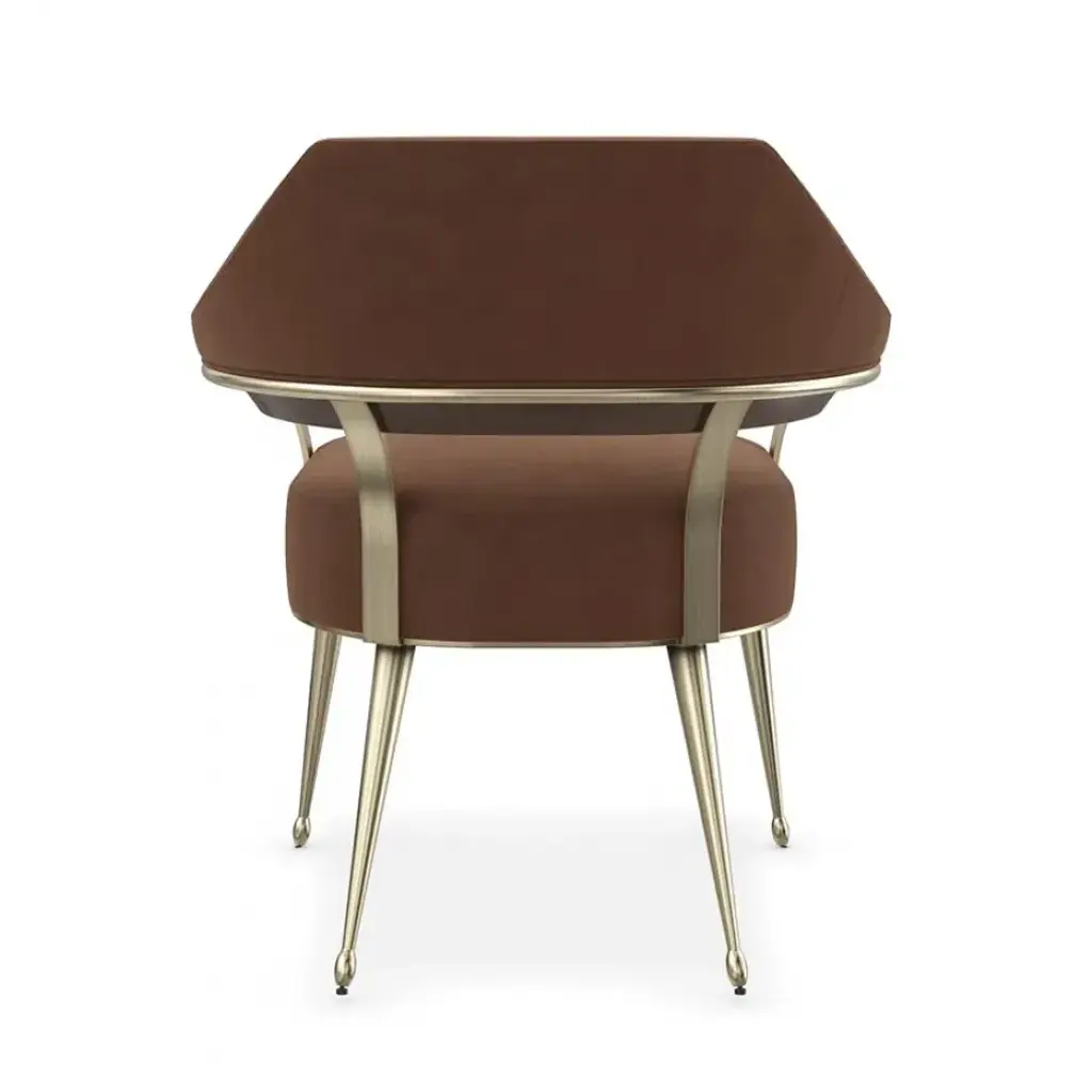 With an elegant silhouette inspired by a French antique, this accent chair is named after the proprietress of a little cafe tucked away in the famed flea market district of Paris, Saint-Ouen. Louisette adds classic warmth and a note of luxe with its slender frame in Champagne Gold and rust-colored mohair fabric with an exposed Galway Burl accent cinching the outside back.