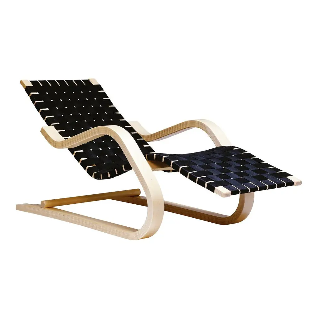 The stunning Lounge Chair 43 further explores the possibilities of bentwood manufacturing. A statement in design, it showcases the stability and flexibility offered by birch lamella, which allows for curves and bends comparable in strength to tubular steel, but with a warmer look and feel. With a frame of cantilevered laminated birch wood and a linen webbing upholstery, Lounge Chair 43 marries beauty with exceptional comfort.