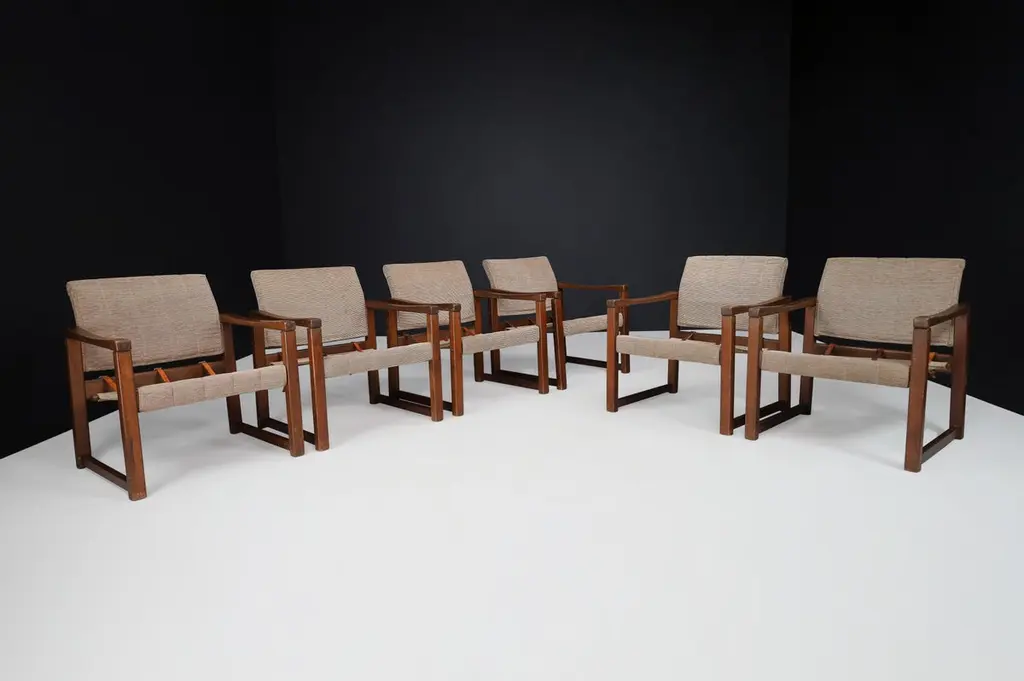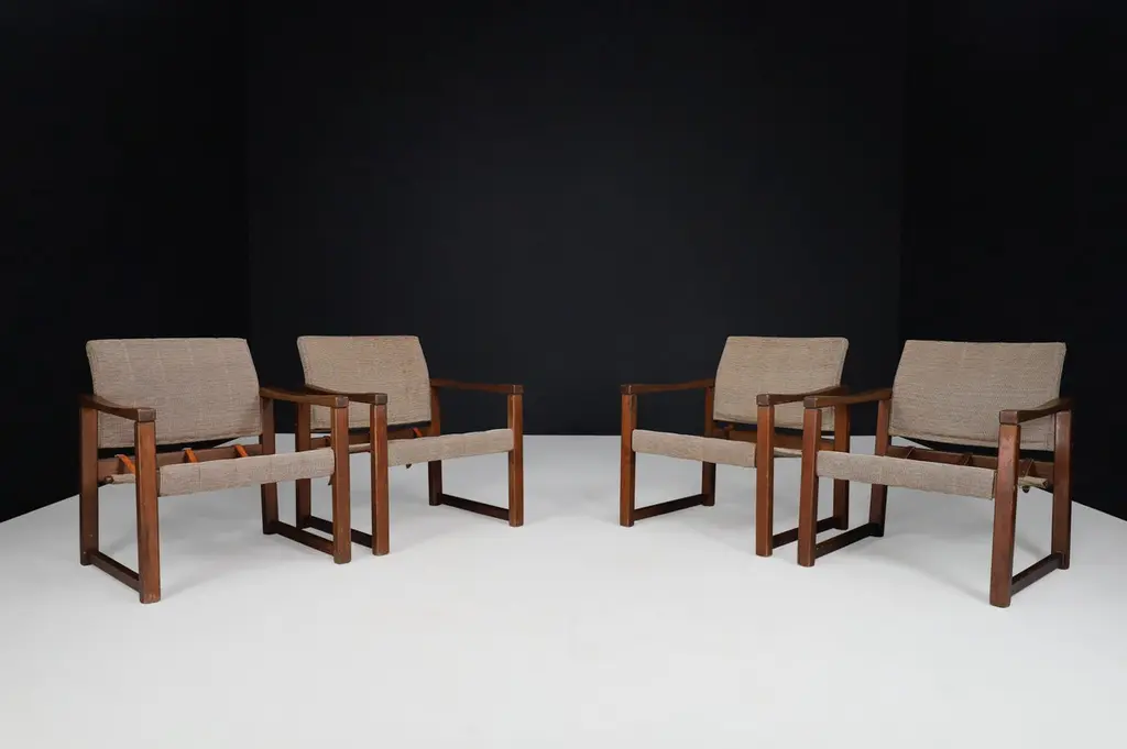 Lounge chairs in Pine and fabric by Karin Mobring, Sweden 1970s.Karin Mobring designed this Ikea classic Vintage lounge chair in 1972. It is made of solid Scandinavian pine wood and original fabric. The design and the look and feel of this occasional chair reminded me of what someone once taught me about good sculptures, "they look great from all angles". And what is particularly important about a chair is that it is also very comfortable to sit in. People have very different thoughts about IKEA furniture, and they are all right, because people have other ideas about designs, quality, durability, etc, the reality is that Ikea has never been more prominent or more widespread (worldwide), and some of the earlier designs will be the antiques of the future. This rare, stylish, and comfortable midcentury modern chair from the early days of Swedish Ikea design is one of those future antiques that will become increasingly collectible. This particular chair is as solid and stable as the day it was made, and for its age, it is still in good condition with a nice used patina, and it will look great in many a midcentury design interior. Original fabric in good vintage condition, wood some minor patina.16 Available, price per chair.