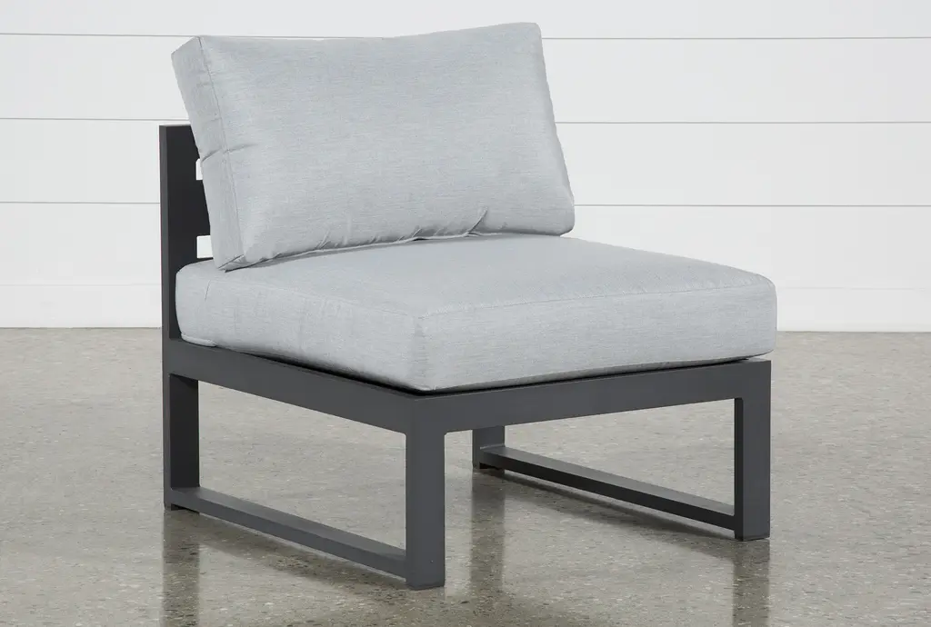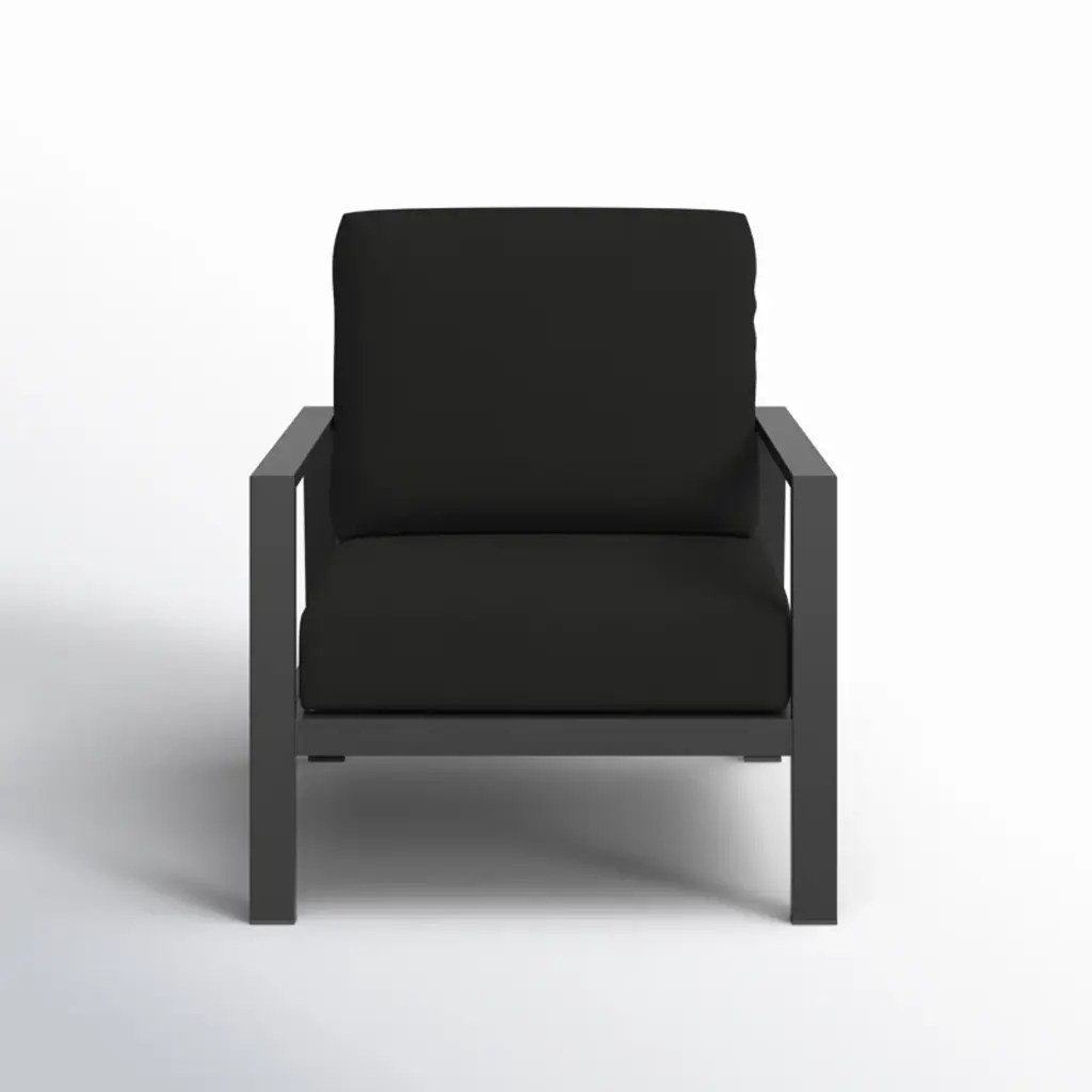 Give your backyard a modern contemporary look with the Luca Deep Seating Center Chair. Sleek, modern, and machine crafted for quality and substance, it features a 2mm thick Aluminum Frame finished with power coating. As the center chair piece of the Lucca Deep Seating Set, be sure to add and mix and match other pieces from the collection to create your custom Lucca Deep Seating Set. Features Non-Marking Black Plastic Foot Caps. Cushion pattern and color choice included. Be sure to contact your representative.