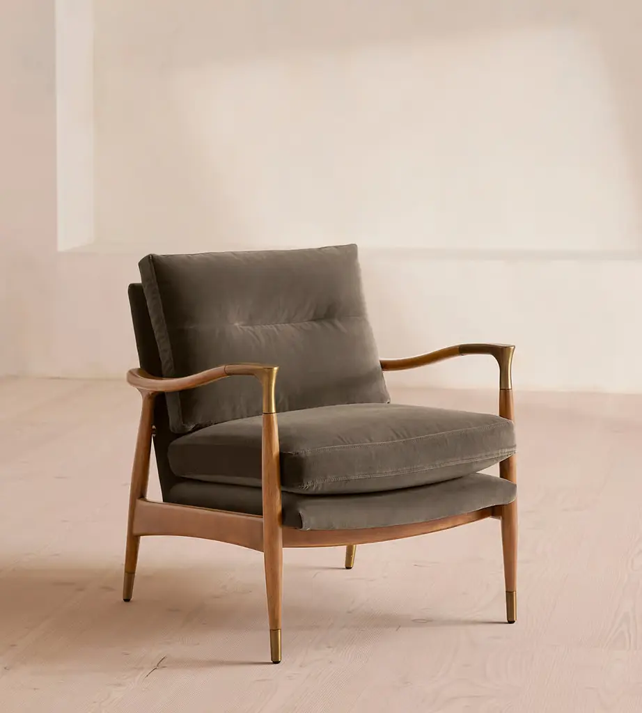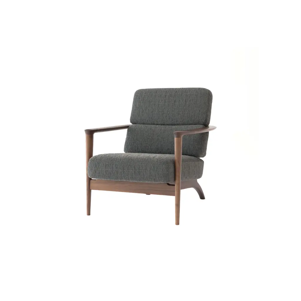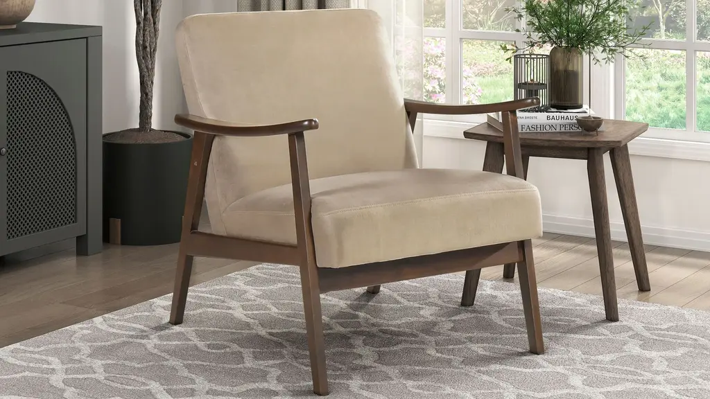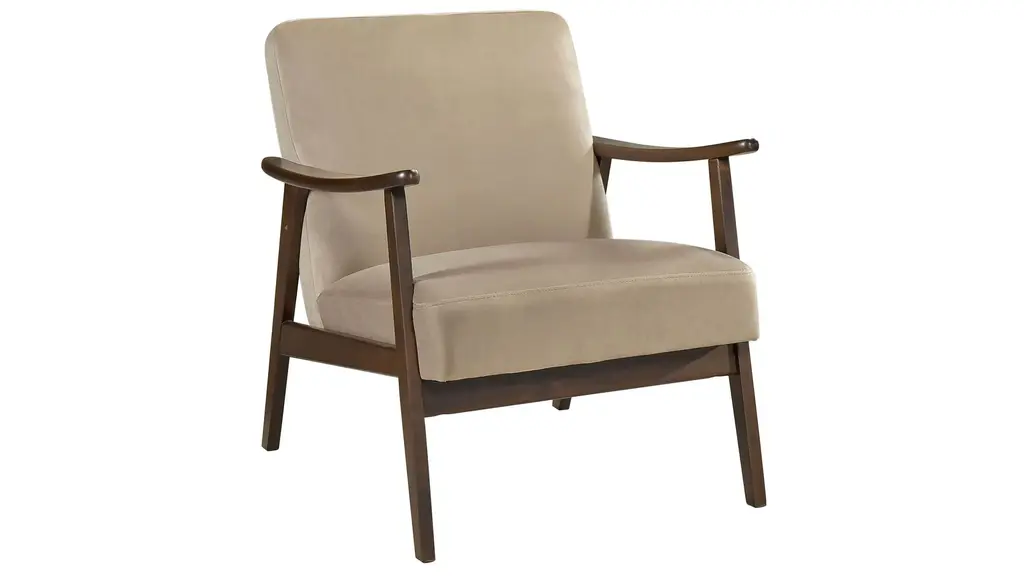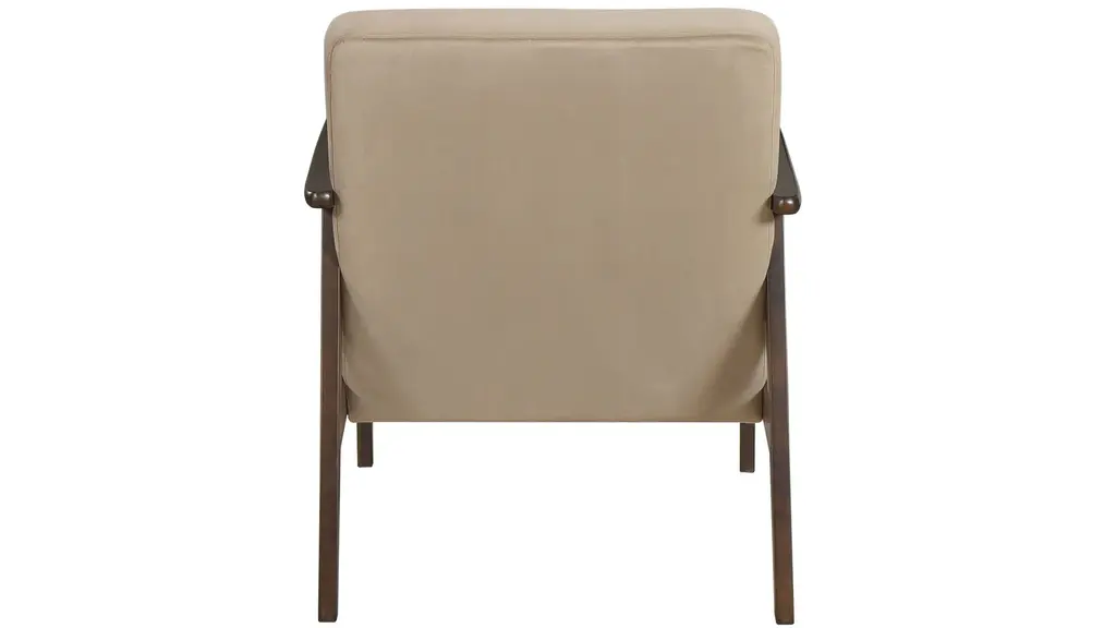 Classic Mid-Century Modern design serves as the inspiration for the timeless profile of the Lucille Accent Chair. The solid wood frame of the accent chair is finished in dark walnut, its hue a perfect pairing to the textured fabric upholstery that covers the padded seat and back.