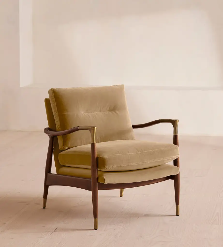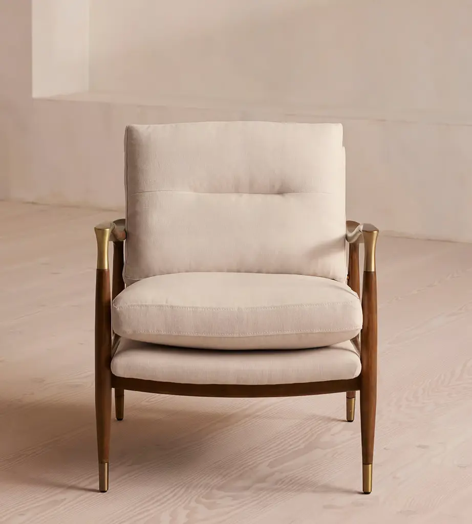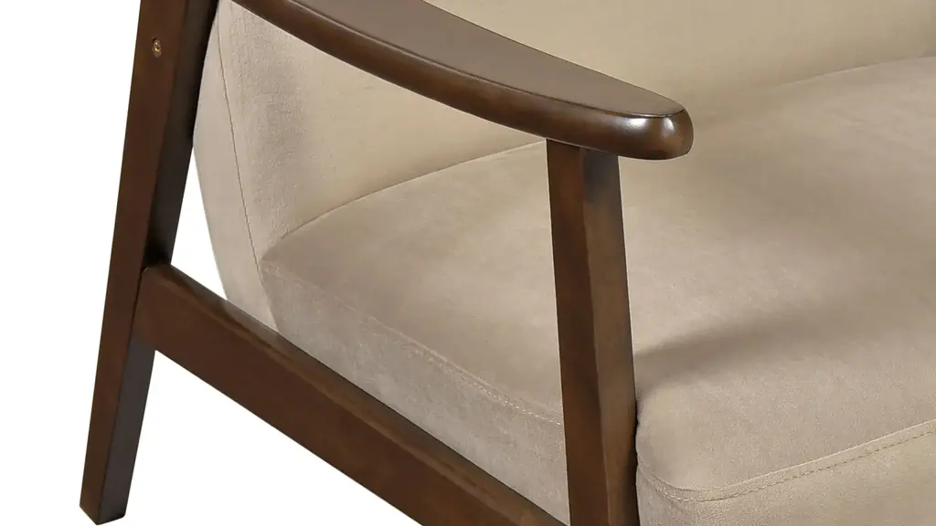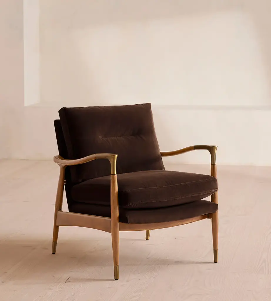 Classic Mid-Century Modern design serves as the inspiration for the timeless profile of the Lucille Accent Chair. The solid wood frame of the accent chair is finished in dark walnut, its hue a perfect pairing to the textured fabric upholstery that covers the padded seat and back.