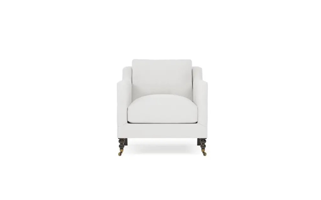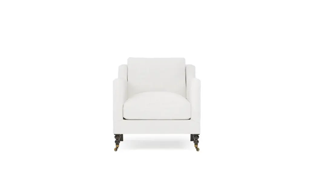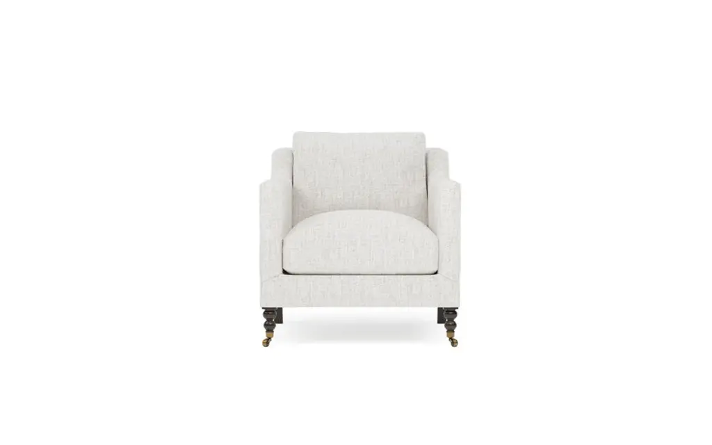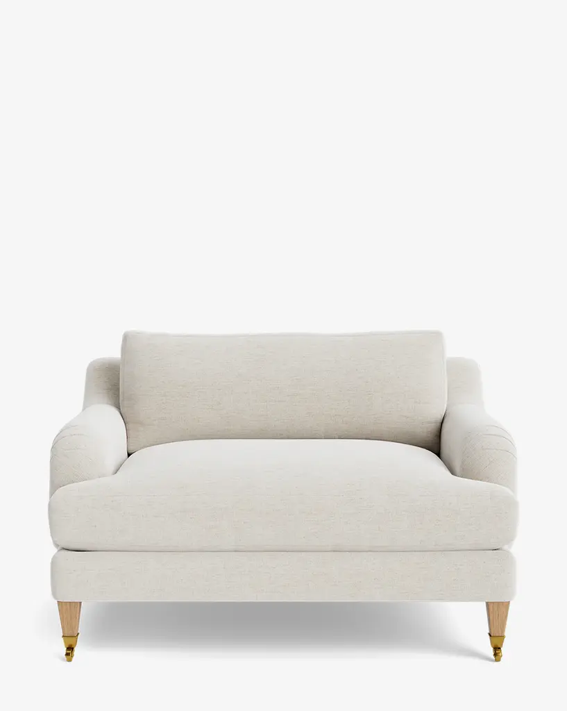 Our Lucille English Roll Arm Chair and a Half is a modern approach to a traditional design. Crafted with luxurious comfort in mind, its classic format features a down wrapped cushion for a perfectly stuffed look and feel. A bench-made alder wood frame adds durability to the design, as four oak wood tapered legs give this chair the ability to move around with ease. Completely customizable in a wide array of fabrics, make the chair your own with either a soft linen, or high performance crypton.