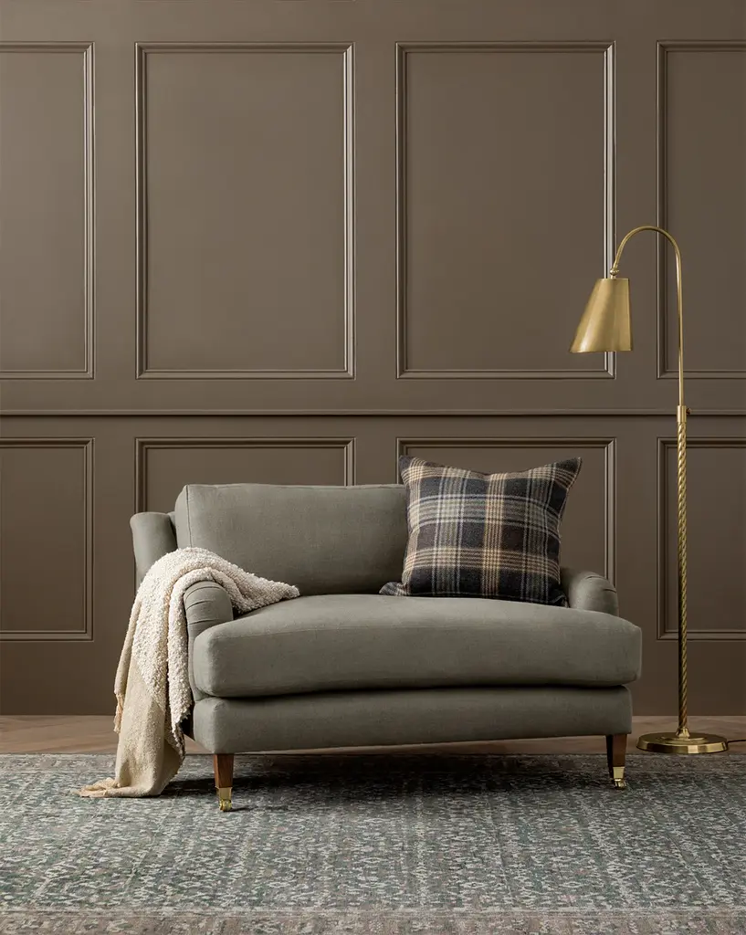 Our Lucille English Roll Arm Chair and a Half is a modern approach to a traditional design. Crafted with luxurious comfort in mind, its classic format features a down wrapped cushion for a perfectly stuffed look and feel. A bench-made alder wood frame adds durability to the design, as four oak wood tapered legs give this chair the ability to move around with ease. Completely customizable in a wide array of fabrics, make the chair your own with either a soft linen, or high performance crypton.