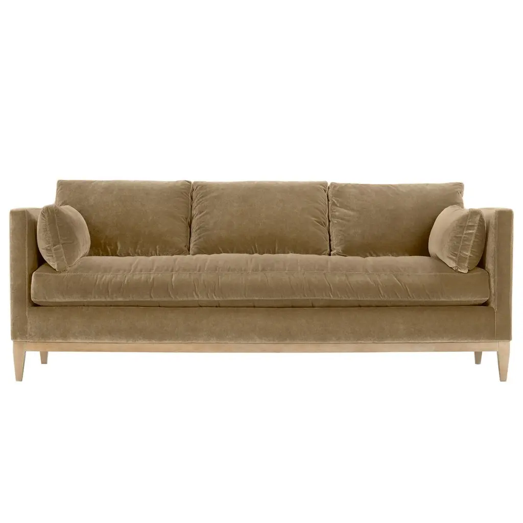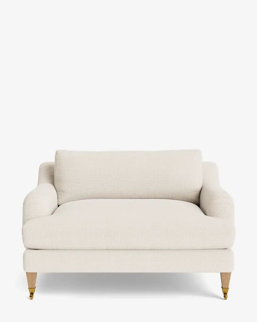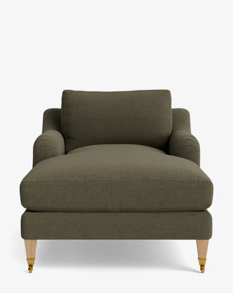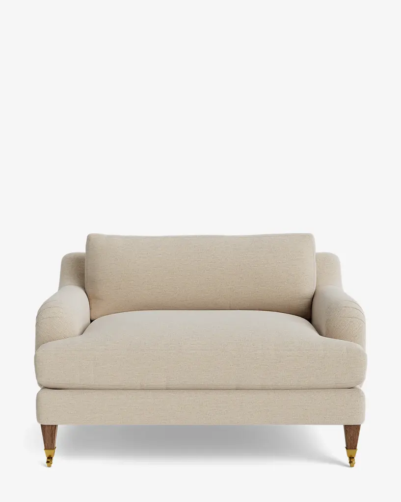 Our Lucille English Roll Arm Chair and a Half is a modern approach to a traditional design. Crafted with luxurious comfort in mind, its classic format features a down wrapped cushion for a perfectly stuffed look and feel. A bench-made alder wood frame adds durability to the design, as four oak wood tapered legs give this chair the ability to move around with ease. Completely customizable in a wide array of fabrics, make the chair your own with either a soft linen, or high performance crypton.