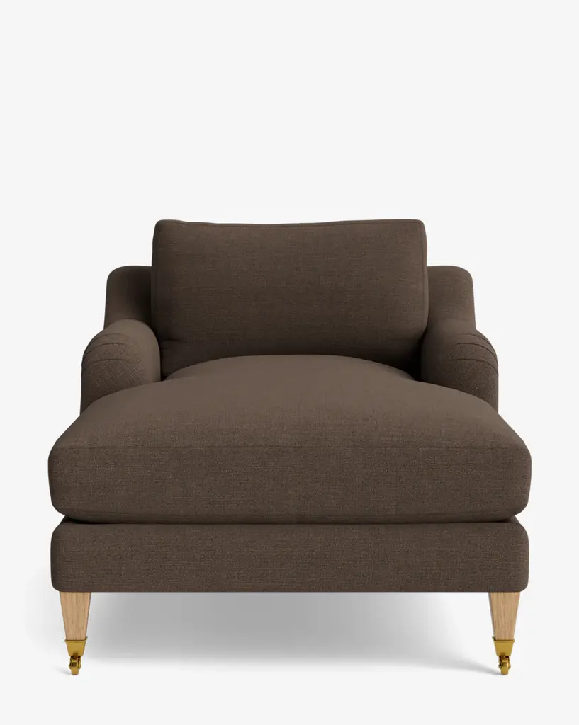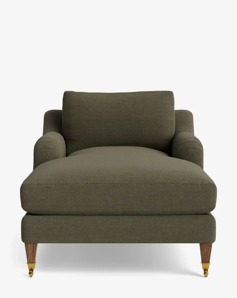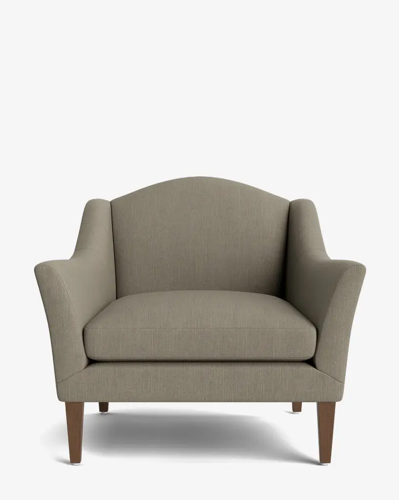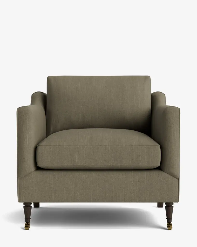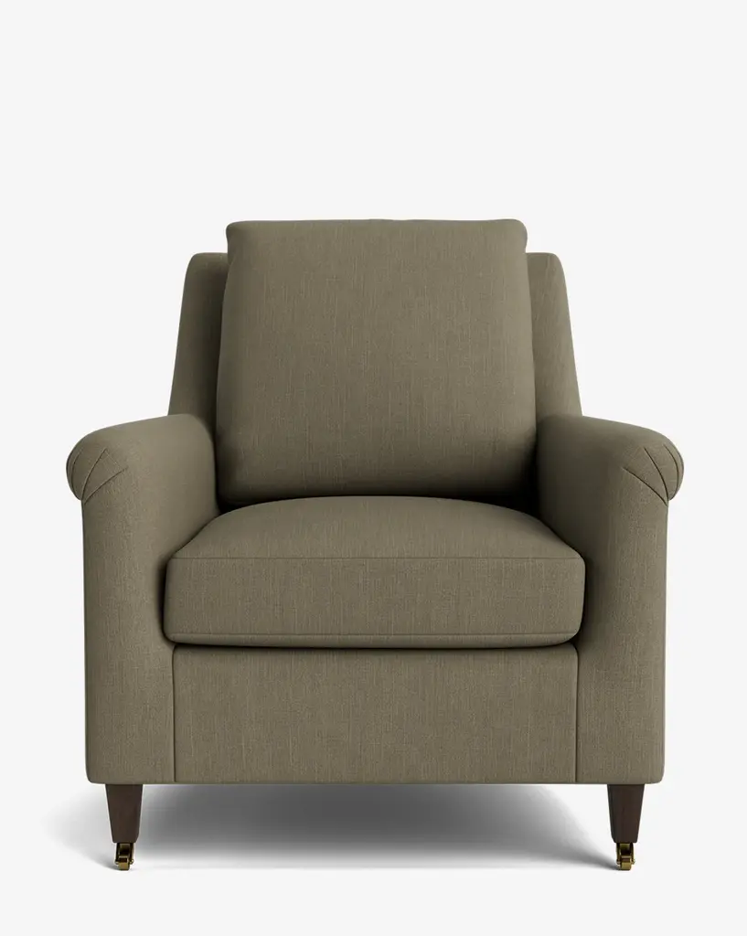 Our Lucille English Roll Arm Chair and a Half is a modern approach to a traditional design. Crafted with luxurious comfort in mind, its classic format features a down wrapped cushion for a perfectly stuffed look and feel. A bench-made alder wood frame adds durability to the design, as four oak wood tapered legs give this chair the ability to move around with ease. Completely customizable in a wide array of fabrics, make the chair your own with either a soft linen, or high performance crypton.