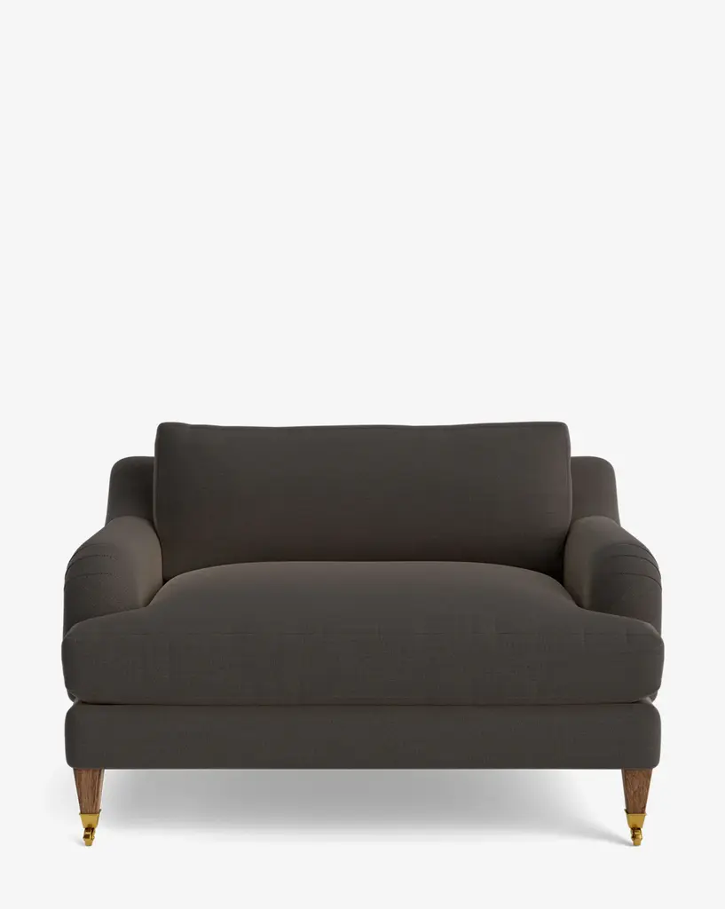 Our Lucille English Roll Arm Chair and a Half is a modern approach to a traditional design. Crafted with luxurious comfort in mind, its classic format features a down wrapped cushion for a perfectly stuffed look and feel. A bench-made alder wood frame adds durability to the design, as four oak wood tapered legs give this chair the ability to move around with ease. Completely customizable in a wide array of fabrics, make the chair your own with either a soft linen, or high performance crypton.
