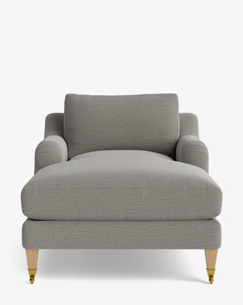 Our Lucille English Roll Arm Chair is a modern approach to a traditional design. Crafted with luxurious comfort in mind, its classic format features a down wrapped cushion for a perfectly stuffed look and feel. A bench-made alder wood frame adds durability to the design, as four oak wood tapered legs give this chair the ability to move around with ease. Completely customizable in a wide array of fabrics, make the chair your own with either a soft linen, or high performance crypton.