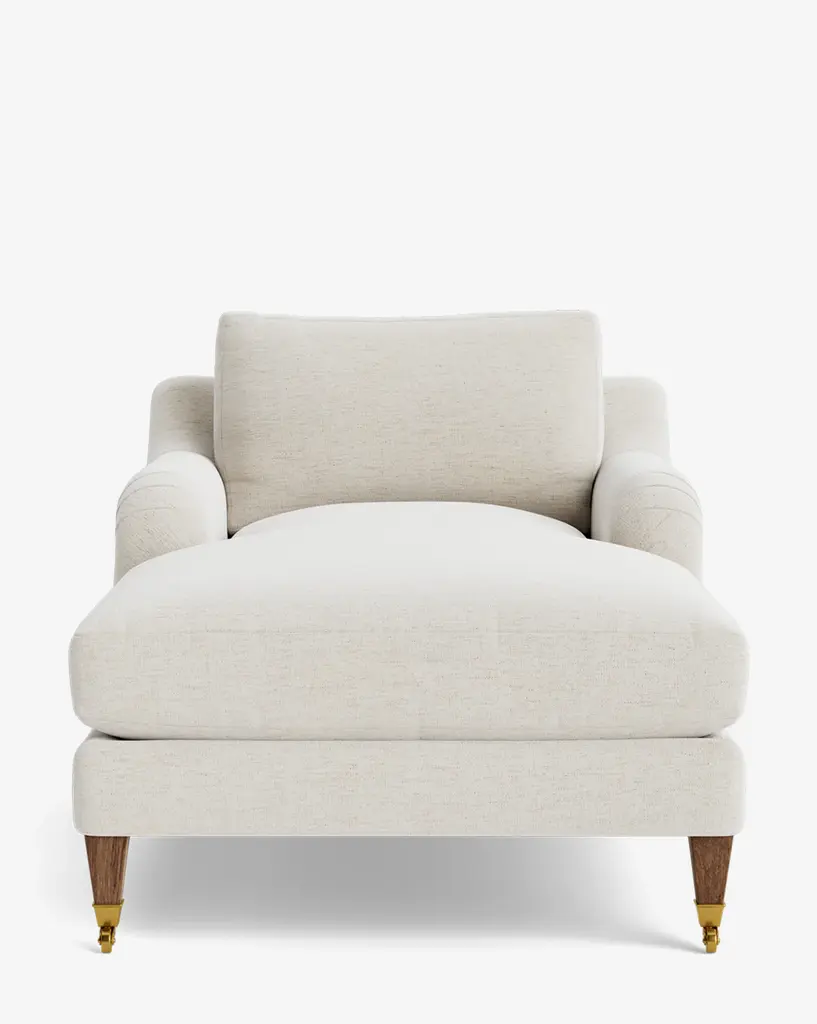 Our Lucille English Roll Arm Chair is a modern approach to a traditional design. Crafted with luxurious comfort in mind, its classic format features a down wrapped cushion for a perfectly stuffed look and feel. A bench-made alder wood frame adds durability to the design, as four oak wood tapered legs give this chair the ability to move around with ease. Completely customizable in a wide array of fabrics, make the chair your own with either a soft linen, or high performance crypton.