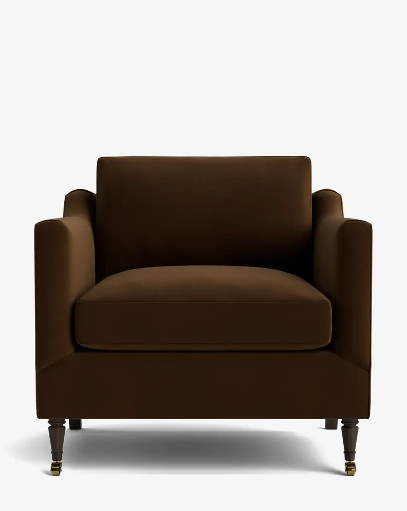 Our Lucille English Roll Arm Chair is a modern approach to a traditional design. Crafted with luxurious comfort in mind, its classic format features a down wrapped cushion for a perfectly stuffed look and feel. A bench-made alder wood frame adds durability to the design, as four oak wood tapered legs give this chair the ability to move around with ease. Completely customizable in a wide array of fabrics, make the chair your own with either a soft linen, or high performance crypton.