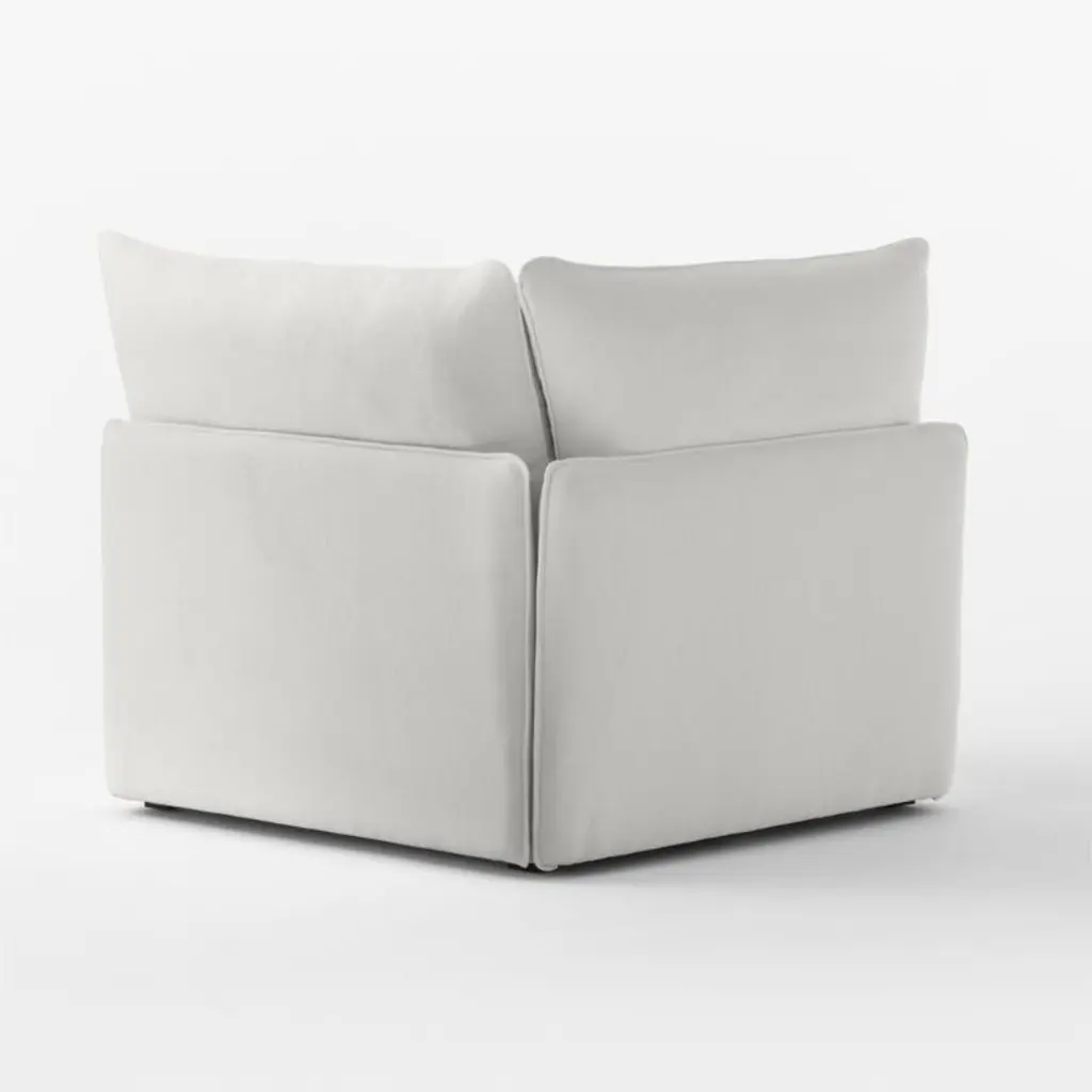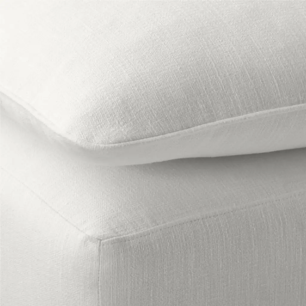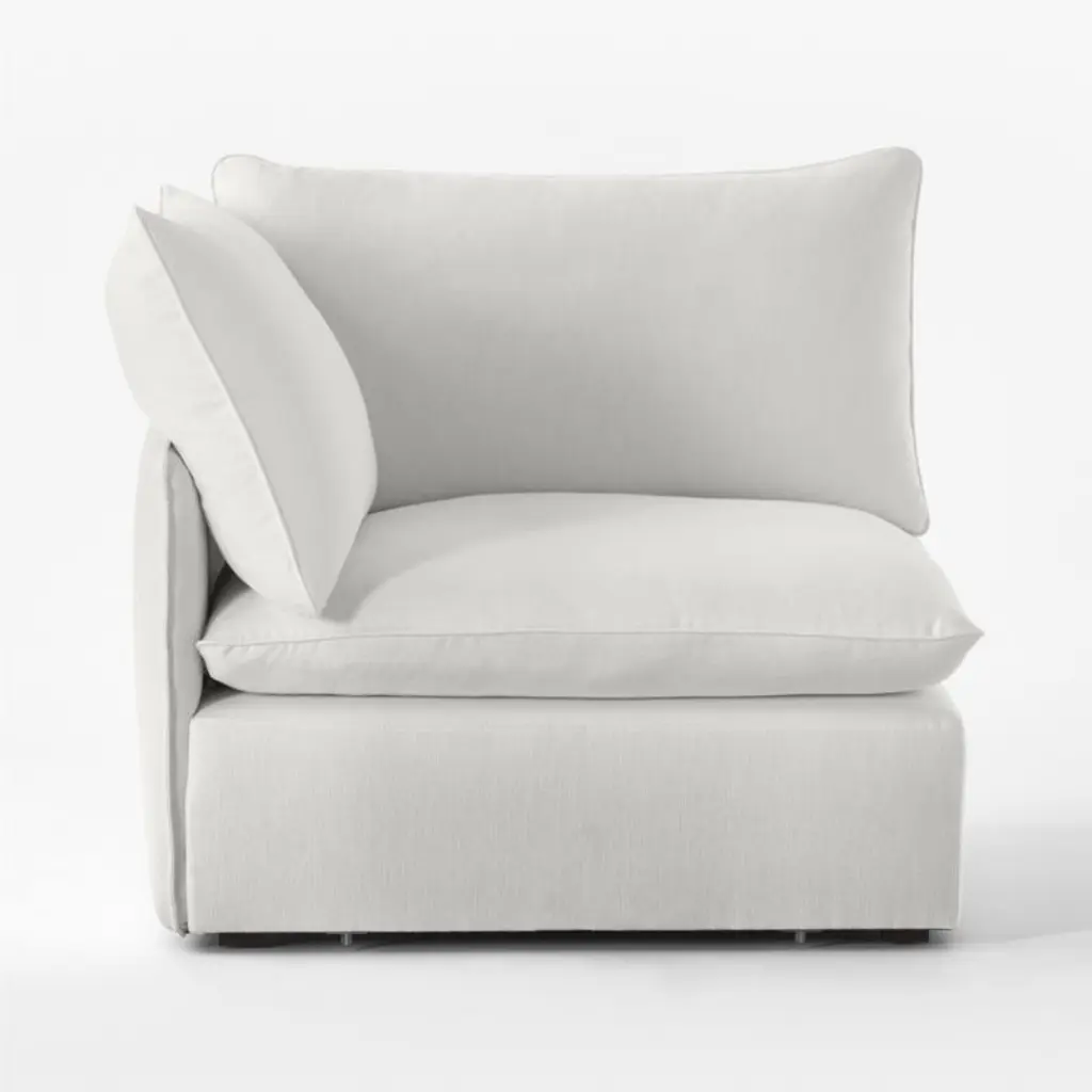 Sink into relaxed luxury with this low-slung design by Mermelada Estudio. Certified sustainable by the Forest Stewardship Council (FSC), the corner chair wood frame is paired with deep, pillow-topped seat and back cushions. Soft, linen-like performance fabric is finished with a clean piping welt. Pair with the ottoman or armless chair for a configuration that fits your space. CB2 exclusive.