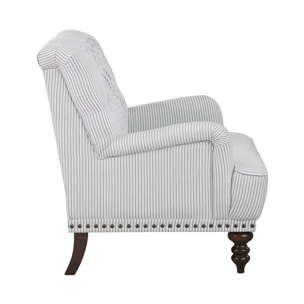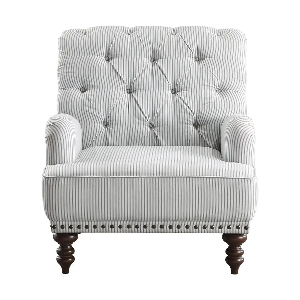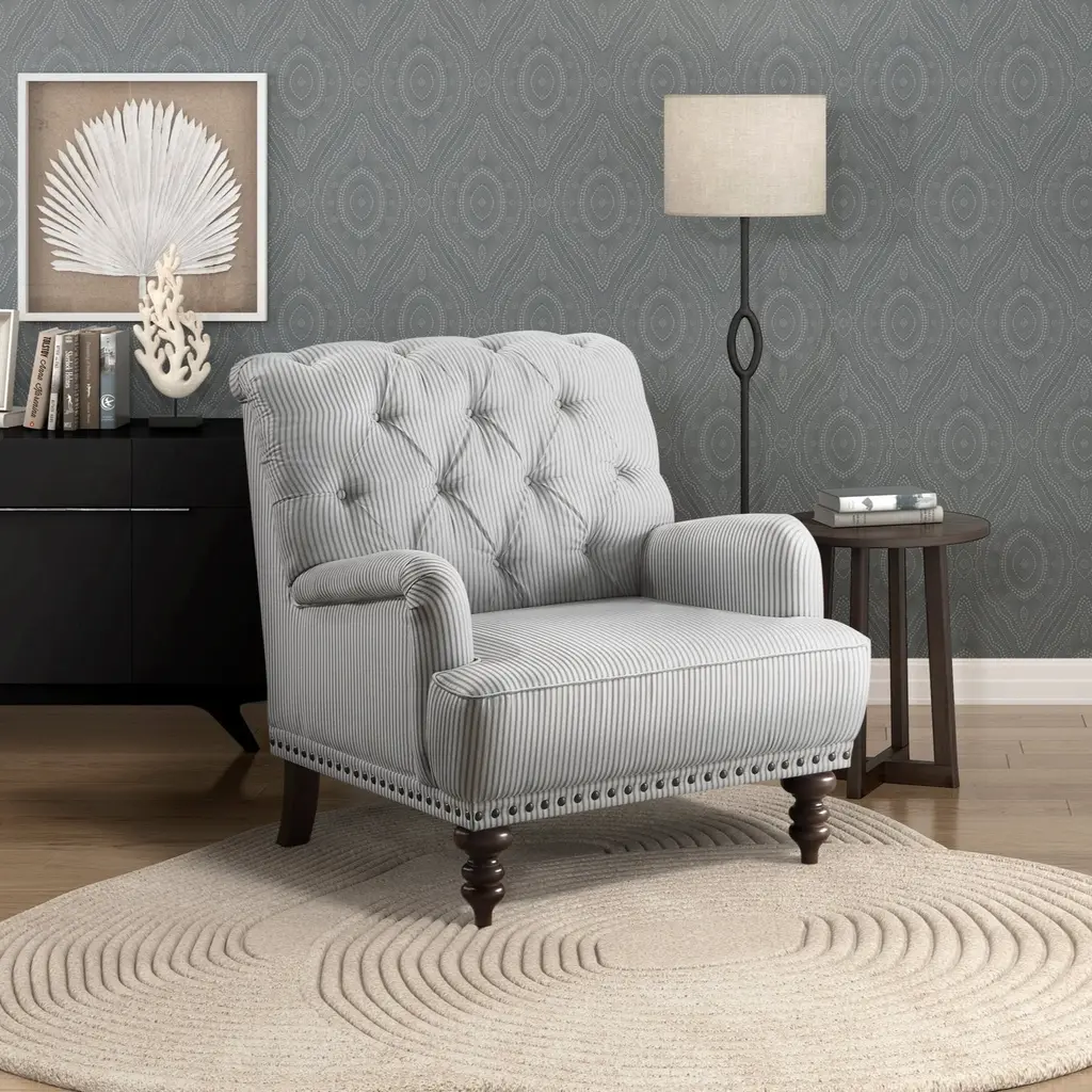 Luxurious Accent Chair With Upholstered Tufted And Nailhead Trim - Grey