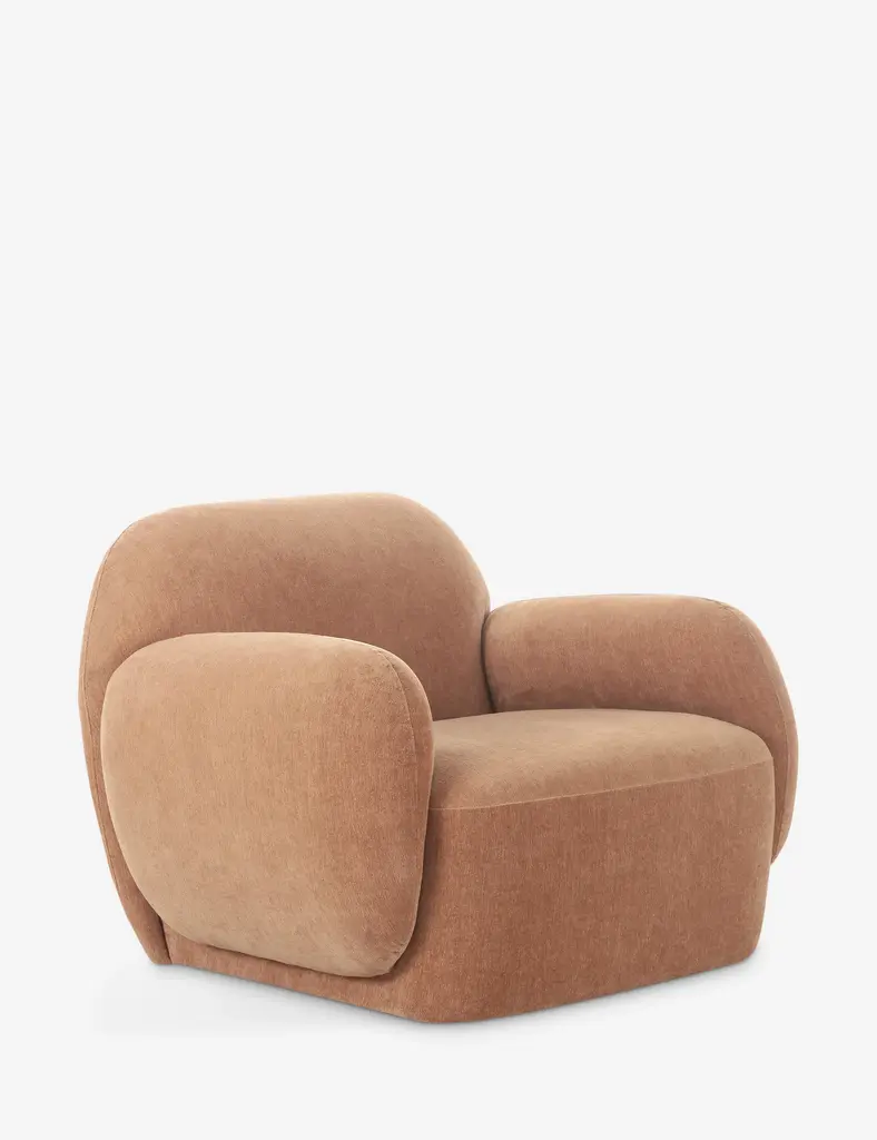 This plush lounge chair makes a bold impression. With its softly exaggerated curves and low-slung form, it brings both comfort and sculptural appeal. The chair's profile strikes a balance between playful and poised, perfect for anchoring a modern space.