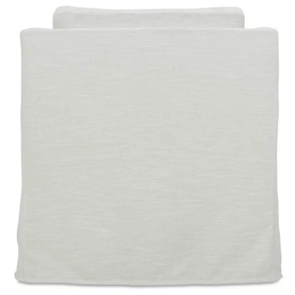 The Madeline Slipcovered Stationary Chair from Rowe Furniture offers contemporary style and comfort. Crafted in the USA, its frame is made from kiln-dried 7-ply hardwood for lasting durability. The flippable cloud cushion, composed of high-density foam, enhances support and comfort. A removable slipcover allows for easy machine washing, ensuring convenient maintenance. Designed for both style and practicality, this chair provides a versatile seating option that complements various interior spaces.
