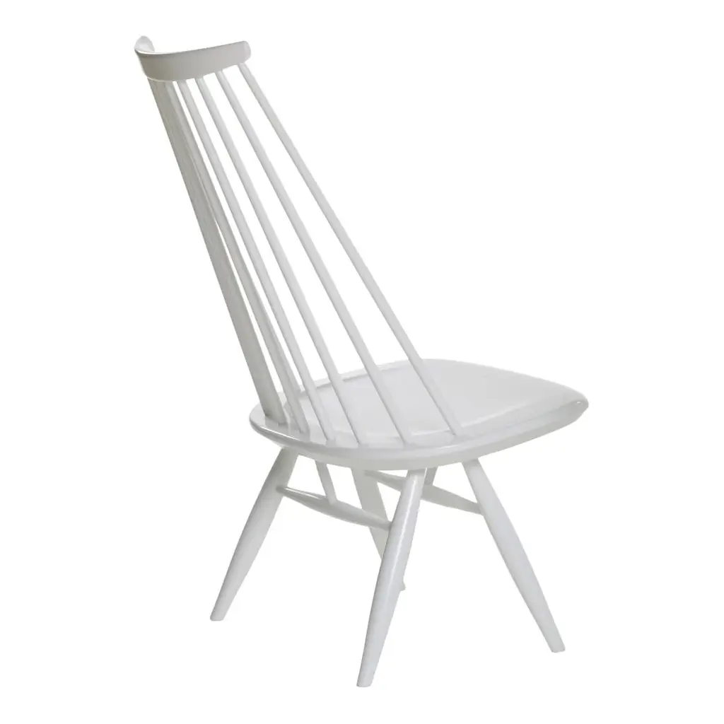 The Mademoiselle Lounge Chair is made from solid birch and was specifically developed for the home. Crafted using an age-old construction method, the spoke back contrasts strikingly with the smooth modernist curves of the seat's softly rounded edge. In creating the Mademoiselle, designer Ilmari Tapiovaara drew inspiration from traditional Finnish chairs, then applied his own modern design approach. Also available as a rocking chair.