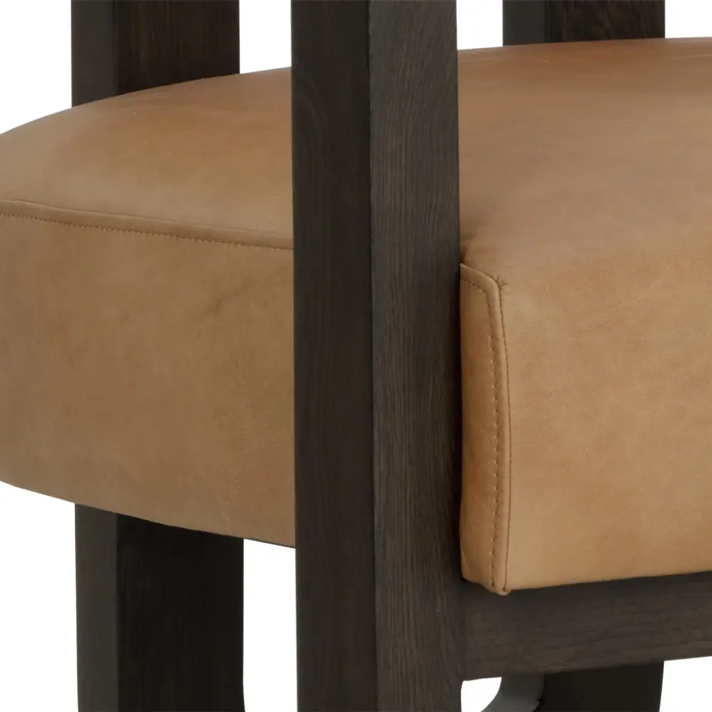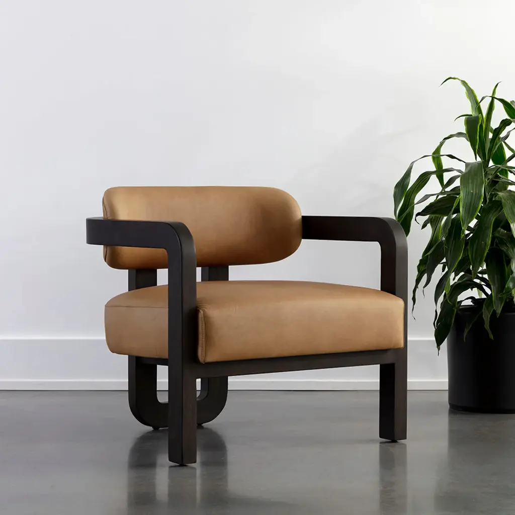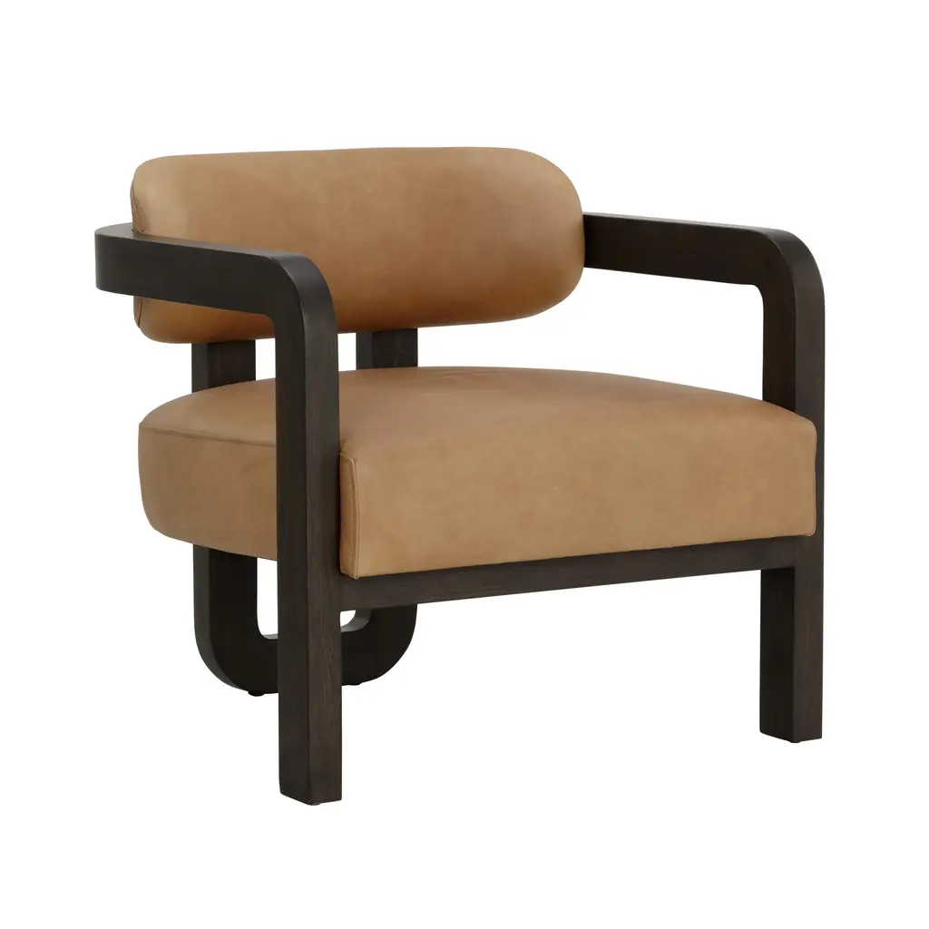 Add a touch of elegance to any office or reading nook with the Madrone Lounge Chair from Sunpan. Its eye-catching silhouette and curved oak wood frame make it a stunning statement piece. The low back seat, upholstered with top grain leather, provides luxurious comfort. Each piece is unique with natural variations in leather and wood, adding dynamic character. Highlights