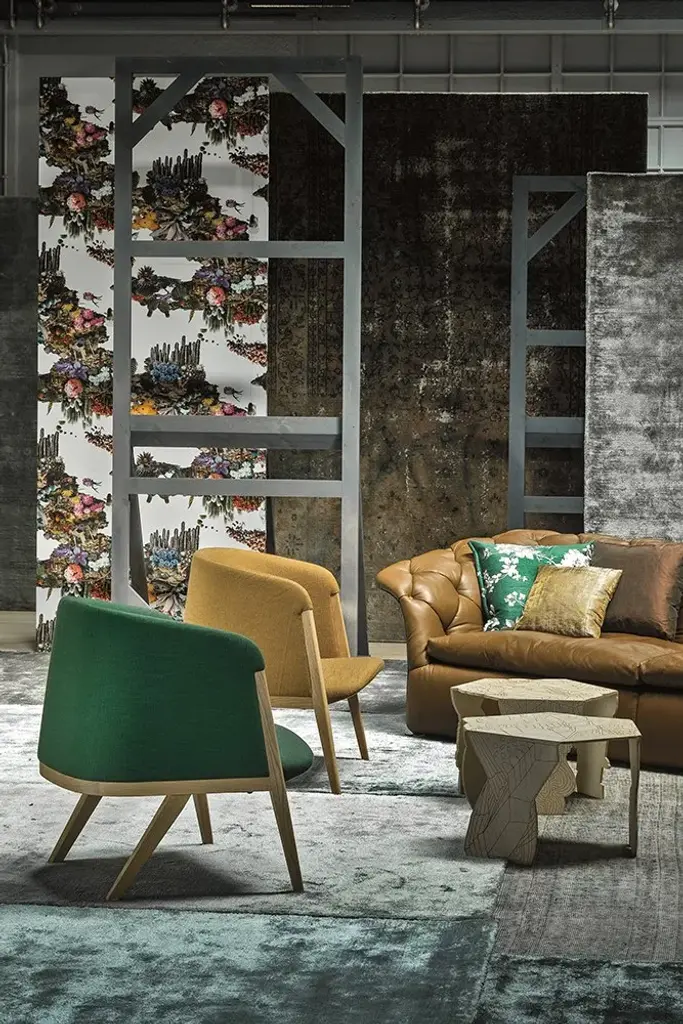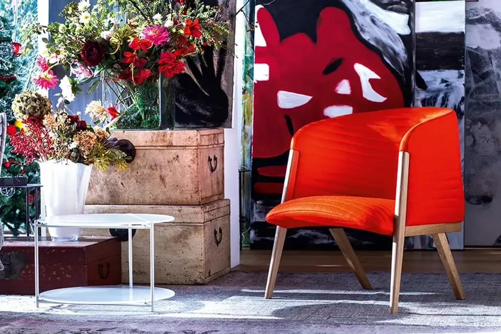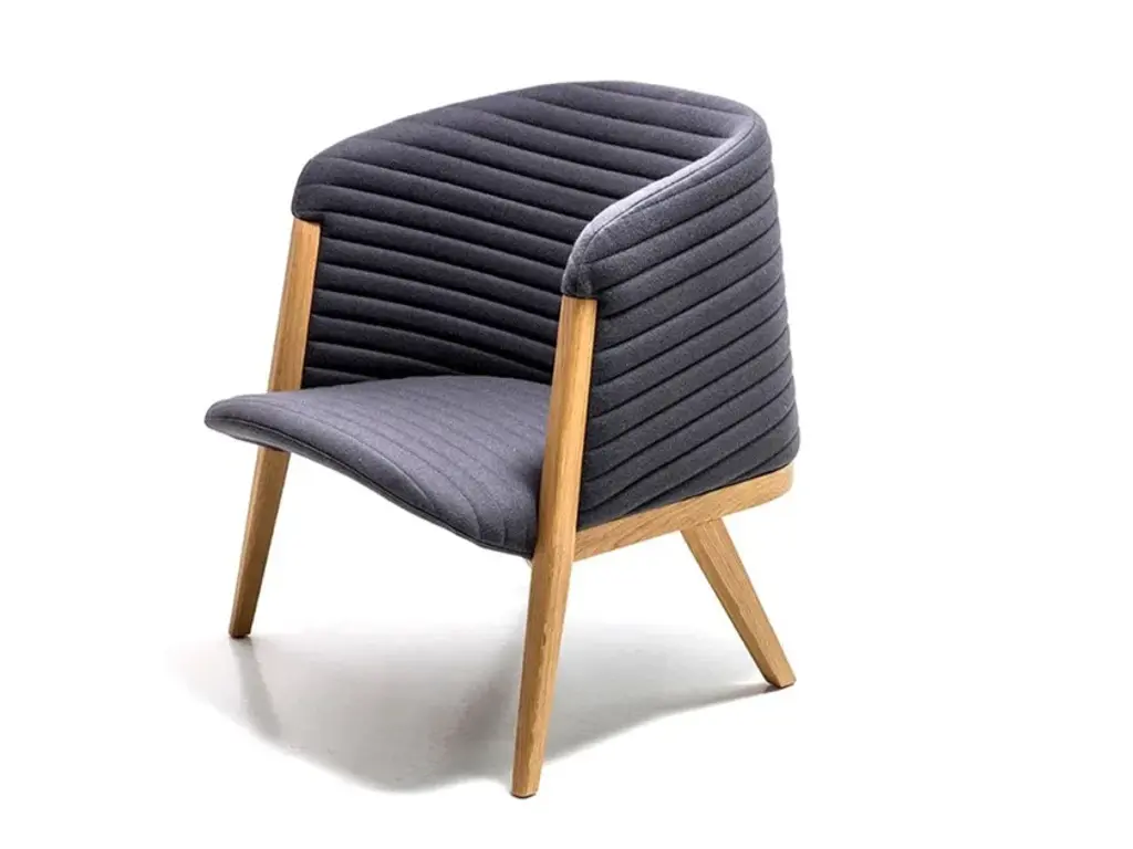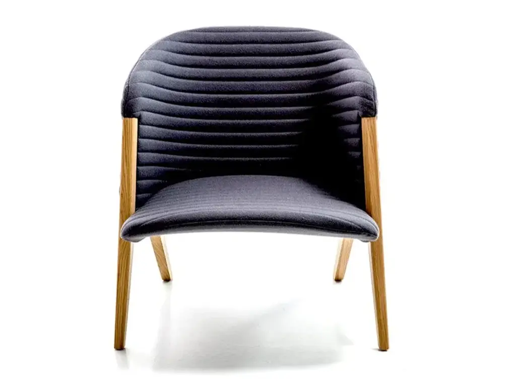 Light and welcoming in shape and character, Mafalda brings together three conceptually distinct components to form a single body: seat, shell and wood base. The result is a distinctive, almost humorous, character. The name is deliberately borrowed from a cartoon character loved for her outgoing personality and no-nonsense language. The parallels between the two Mafaldas are obvious. In her spontaneity Mafalda expresses, with a very light touch, the idea of a project which takes into account the life-cycle of a project. Injected flame-retardant polyurethane foam over internal steel frame. Base is oak. Mafalda covers are not removable. Covers available in two versions:a) fabric or leather over polyurethane foam with horizontal stitchingb) fabric or leather without stitchingNOTE:- for leather, a soft, pliable leather is strongly recommended.