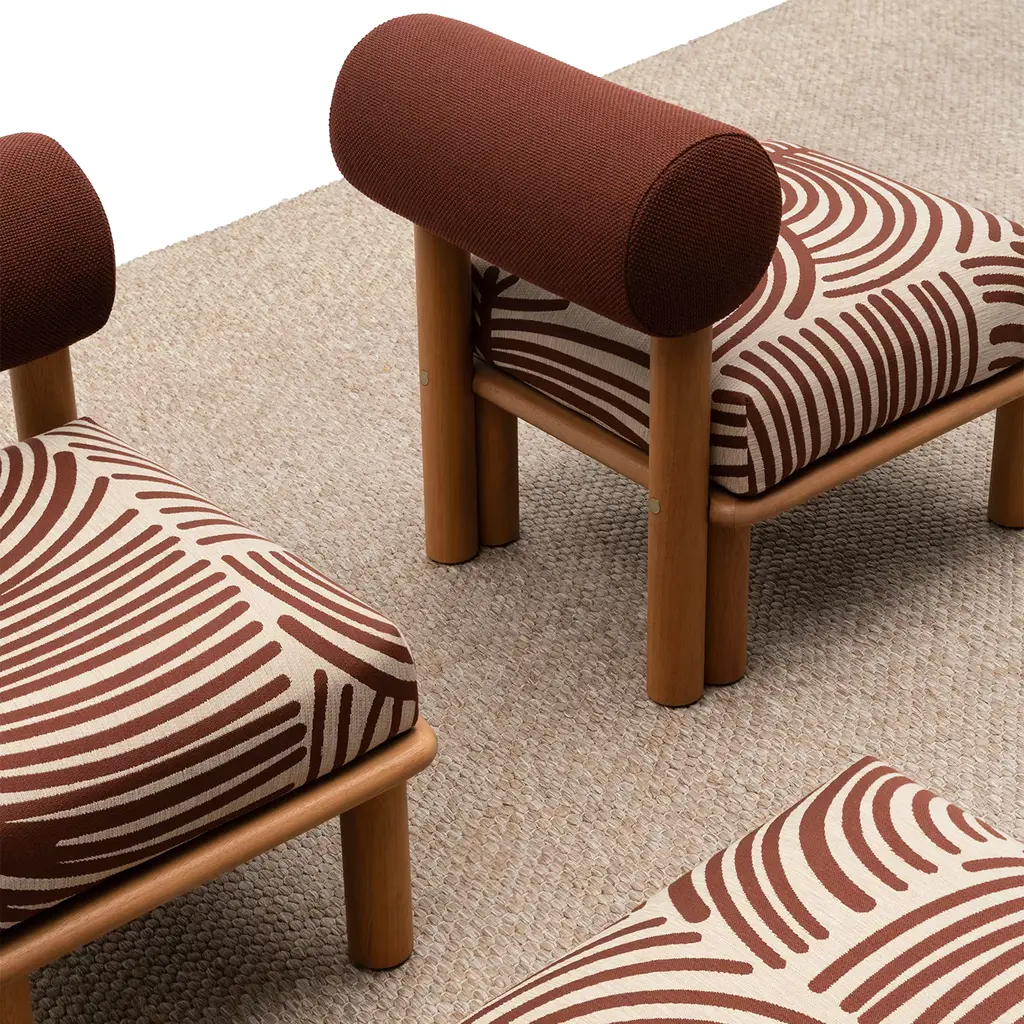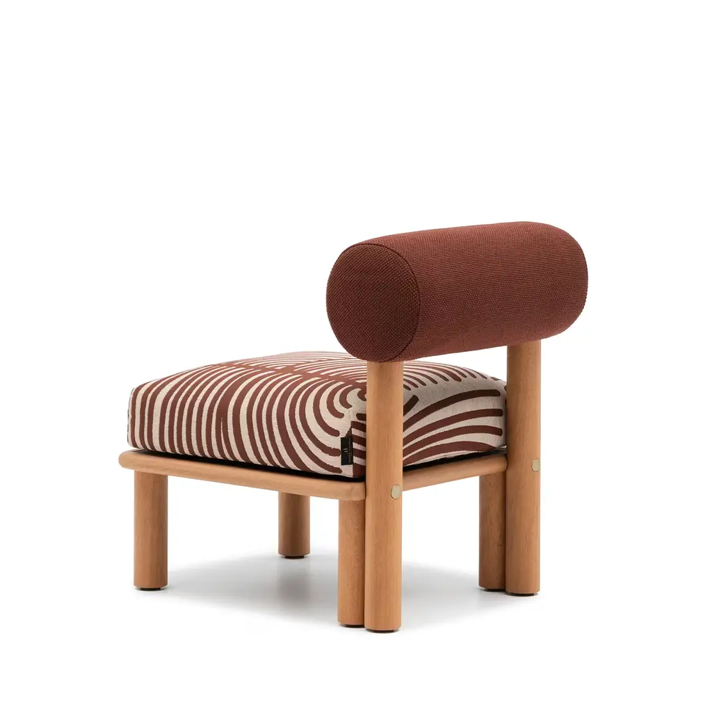 Maitha, a feminine Arabic name meaning “fertile garden”, is an outdoor lounge chair designed by Lorenza Bozzoli with a bold aesthetic, elegant and cosy. The structure is in Iroko wood treated with a water-based oil for a greater protection against UVA rays and colour uniformity. The seat cushion is made of non-deformable polyurethane in high density. The roll cushion, that performs as a back cushion, is removable. The external cover is suitable for outdoor use, removable and washable. The protective cover is included.