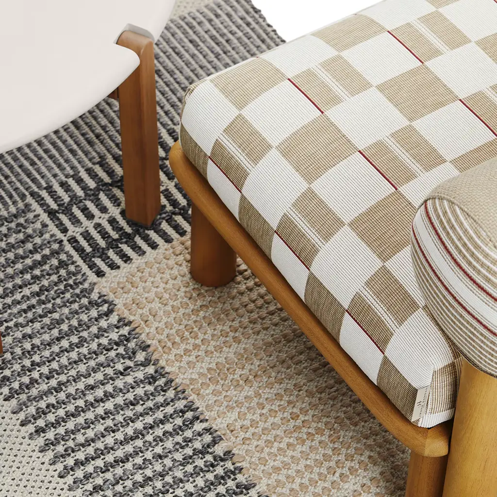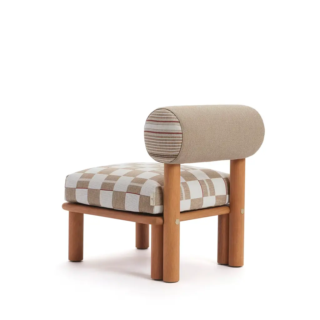 Maitha, a feminine Arabic name meaning “fertile garden”, is an outdoor lounge chair designed by Lorenza Bozzoli with a bold aesthetic, elegant and cosy. The structure is in Iroko wood treated with a water-based oil for a greater protection against UVA rays and colour uniformity. The seat cushion is made of non-deformable polyurethane in high density. The roll cushion, that performs as a back cushion, is removable. The external cover is suitable for outdoor use, removable and washable. The protective cover is included.