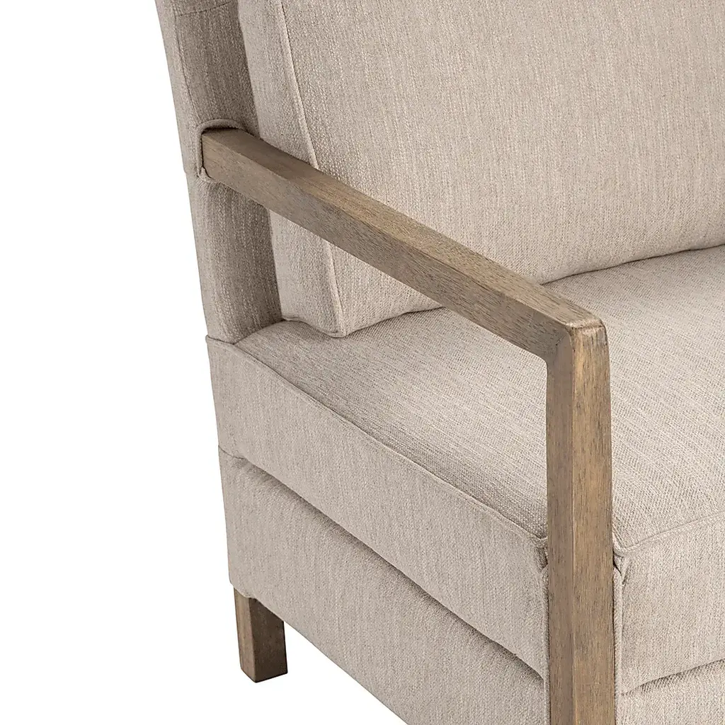 As refreshing as a bayside breeze, the Malcolm accent chair's serenity and simplicity transform a cozy seat into the perfect retreat. Beige microfiber makes for a soft, comfortable resting spot, while richly finished arms in brown form handsome angles to highlight the traditional appeal of this accent.