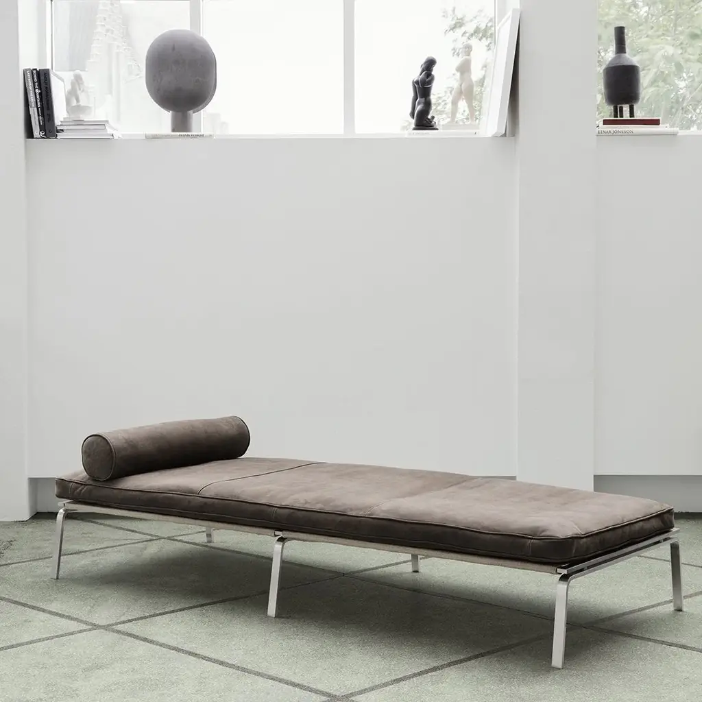 Inspired by the Bauhaus era where simple and clean shapes were in focus, the MAN Series is a collection of furniture with clean expression. Minimal materials and a functional design philosophy make the MAN Series aesthetically pleasing. The frame is made from stainless steel with a seat and back made of reinforced canvas. The cushions are upholstered with high quality leather and filled with fine down filling. The series consists of two- and three-seater sofas, lounge chair, daybed, chaise longue, coffee table and side table. The leather cushions come upholstered with various types of Premium or Vintage hides from Sørensen Leathers and the tables come with a fine black marble from the Iberian peninsula or a veiny green Indian marble. Note: The colour on the photos vary from the actual product you receive.