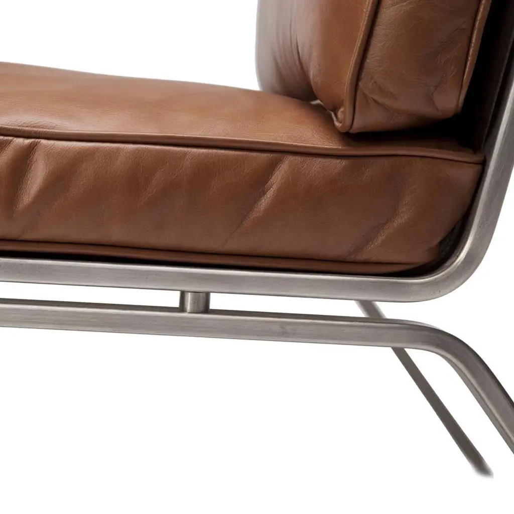 Inspired by the Bauhaus era where simple and clean shapes were in focus, the MAN Series is a collection of furniture with clean expression. Minimal materials and a functional design philosophy make the MAN Series aesthetically pleasing. The frame is made from stainless steel with a seat and back made of reinforced canvas. The cushions are upholstered with high quality leather and filled with fine down filling. The series consists of two- and three-seater sofas, lounge chair, daybed, chaise longue, coffee table and side table. The leather cushions come upholstered with various types of Premium or Vintage hides from Sorensen Leathers and the tables come with a fine black marble from the Iberian peninsula or a veiny green Indian marble.