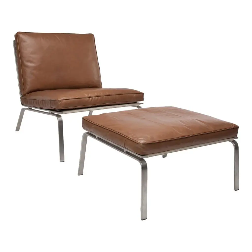 Inspired by the Bauhaus era where simple and clean shapes were in focus, the MAN Series is a collection of furniture with clean expression. Minimal materials and a functional design philosophy make the MAN Series aesthetically pleasing. The frame is made from stainless steel with a seat and back made of reinforced canvas. The cushions are upholstered with high quality leather and filled with fine down filling. The series consists of two- and three-seater sofas, lounge chair, daybed, chaise longue, coffee table and side table. The leather cushions come upholstered with various types of Premium or Vintage hides from Sorensen Leathers and the tables come with a fine black marble from the Iberian peninsula or a veiny green Indian marble.