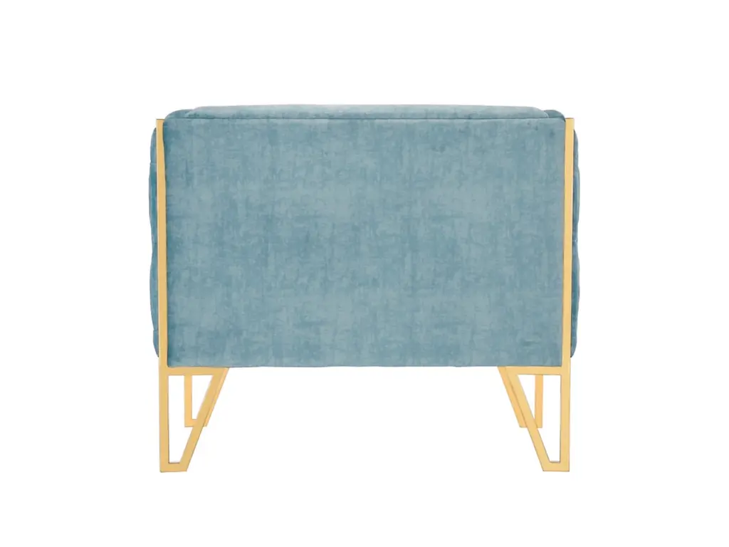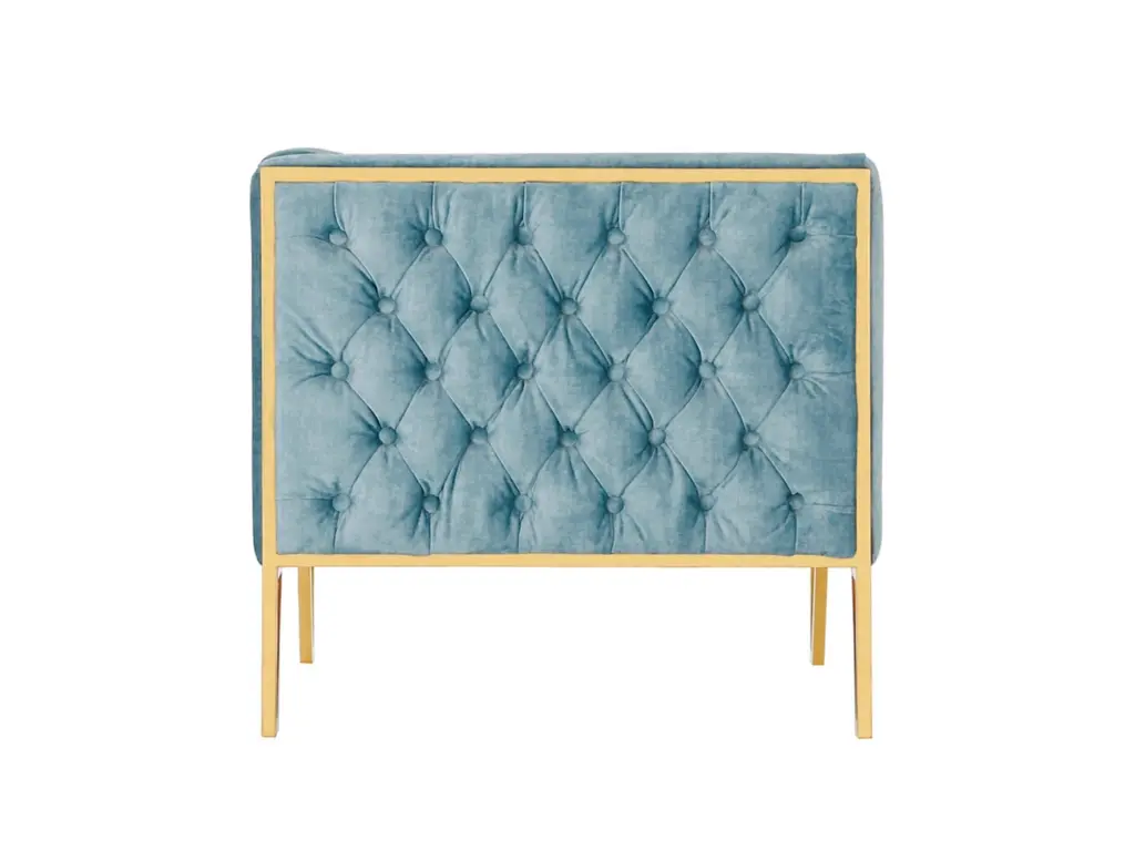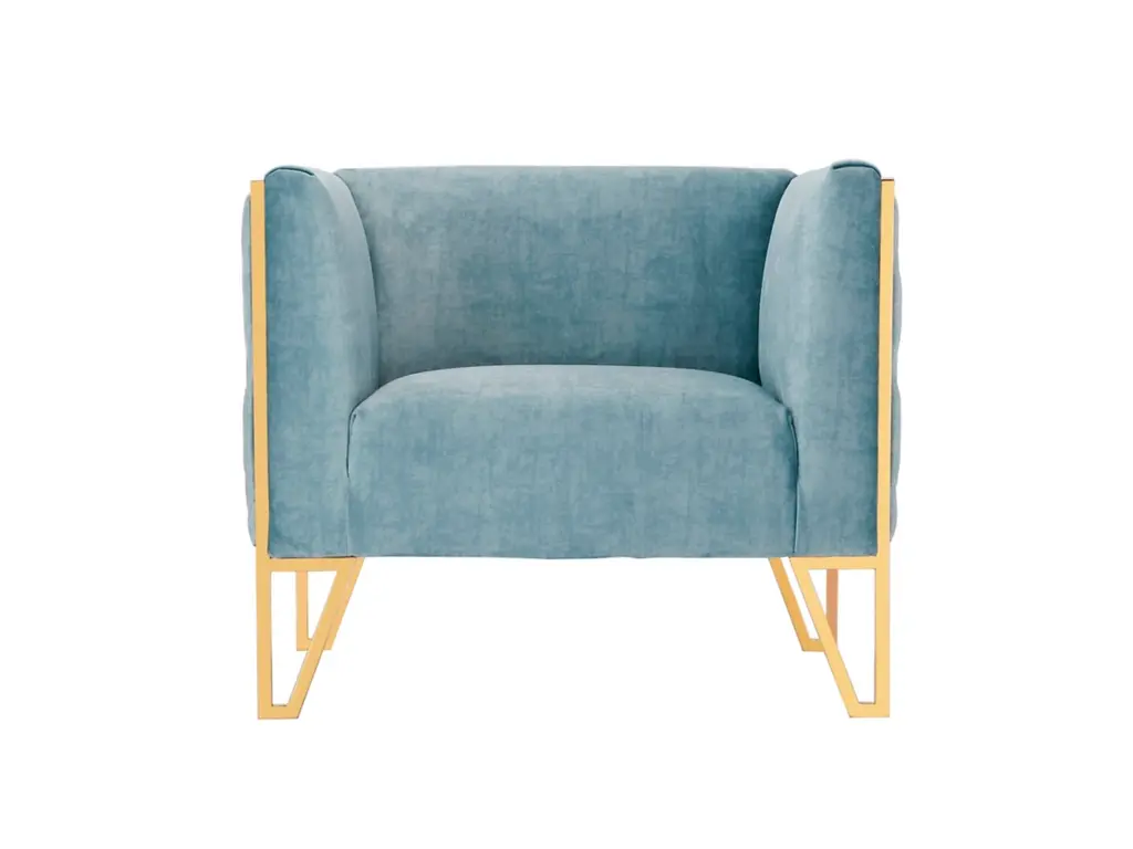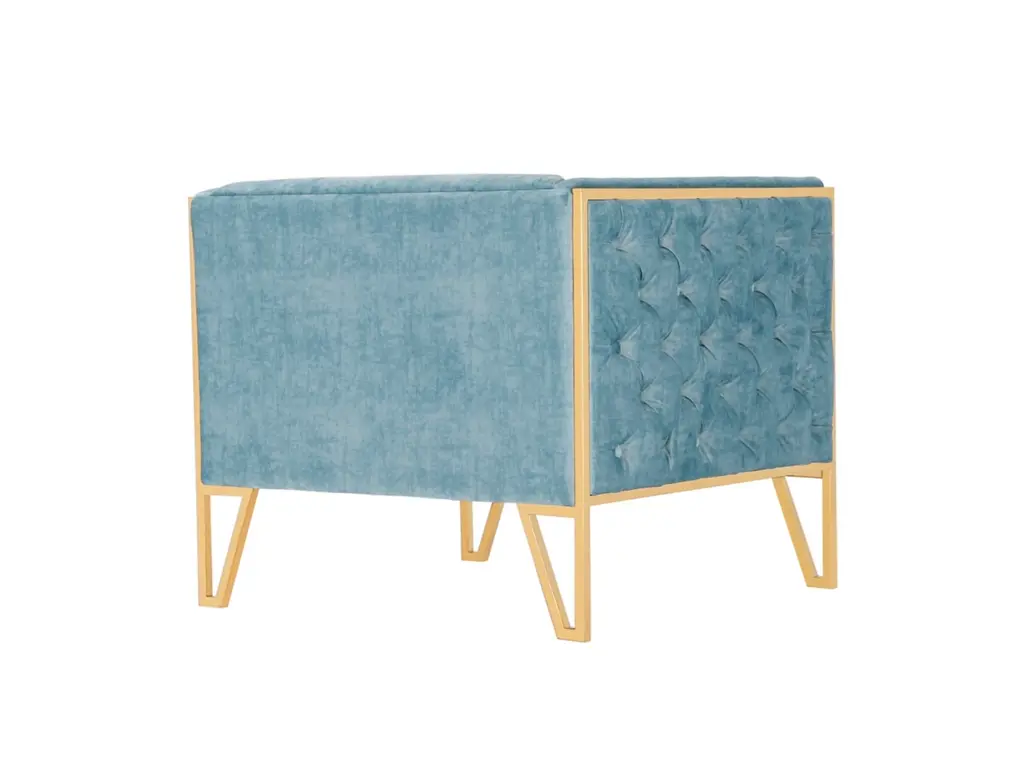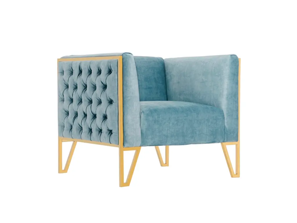 Dynamic. Contemporary. Upscale. Freshen up your living space with the Vector Accent Chair. Featuring a subtly geometric frame and open cutout feet, the design combines clean architectural lines with posh texture for an eye catching look. Rows of deep button tufts accentuate either side of the chair, emphasizing the plush cushioning beneath its tailored velvet upholstery. It’s luxe polished brass finish perfects the look. Coordinate with the matching Vector Sofa for a stylish update to your decor.