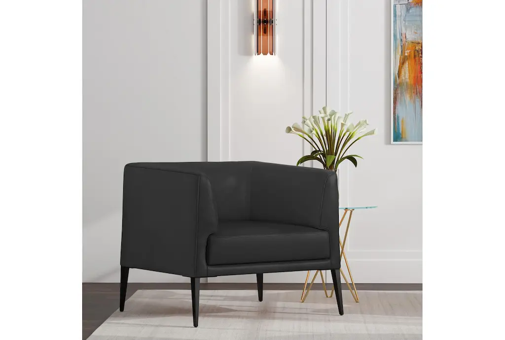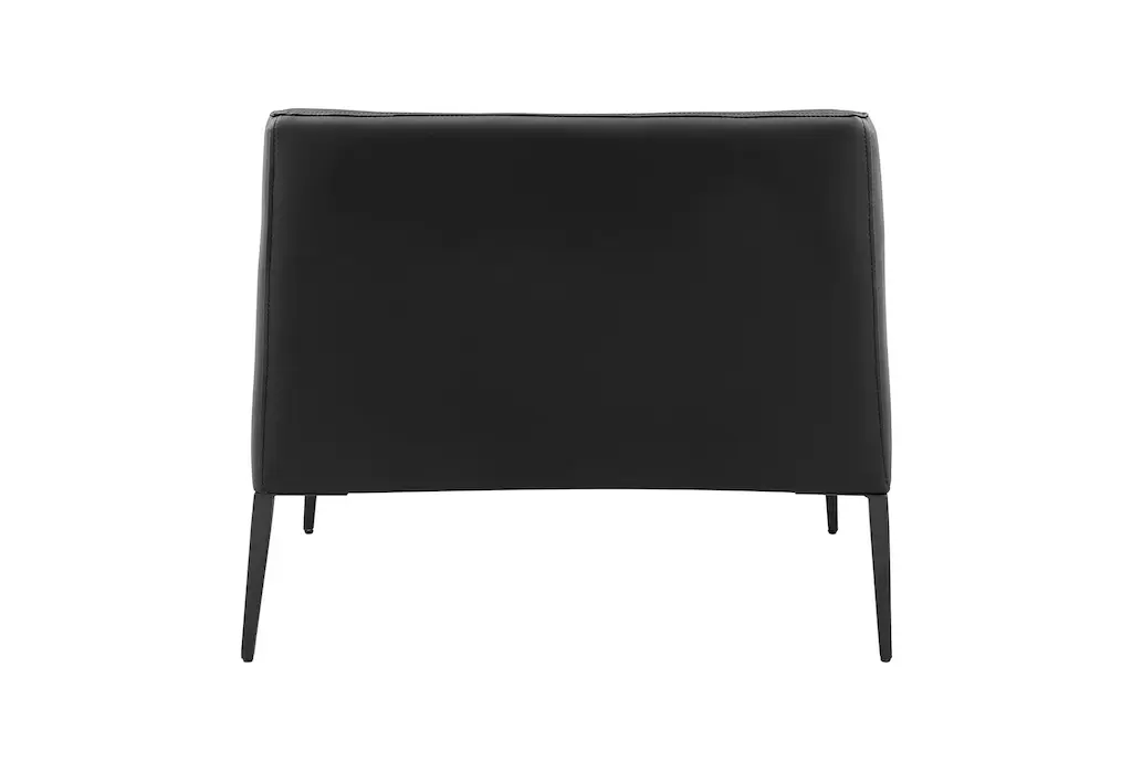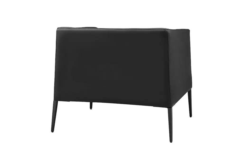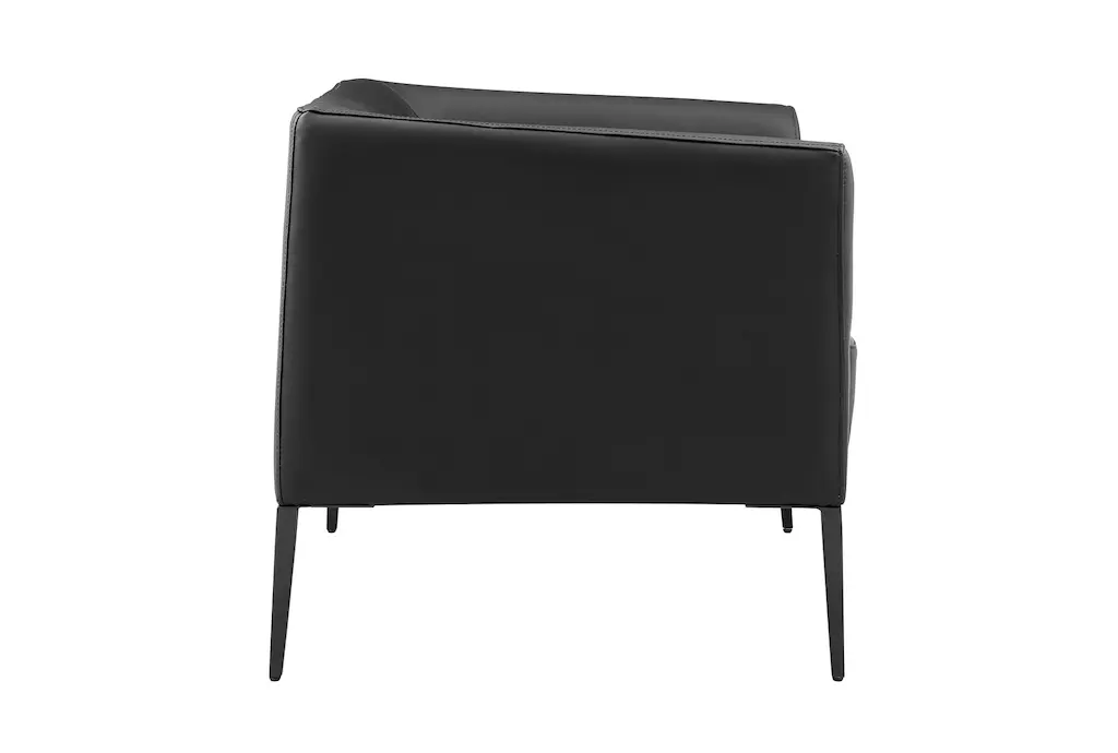The Mani Black Leather Lounge Arm Chair with Matte Black Legs is a stylish addition to any living room. The modern design and firm comfort level make it a perfect choice for both relaxation and conversation. Its sleek look and practical features ensure it will be a versatile piece in your home.