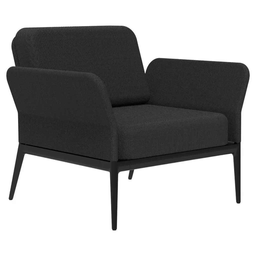 Mani Black Leather Lounge Arm Chair With Matte Black Legs