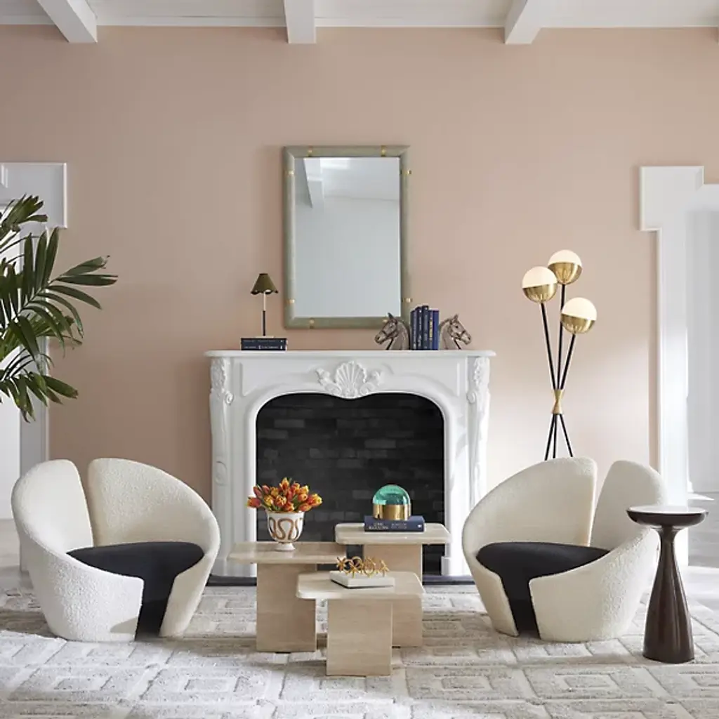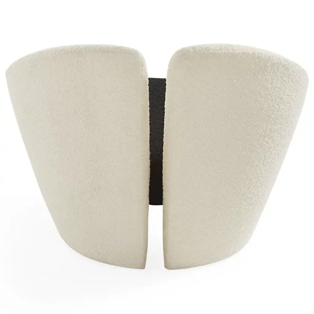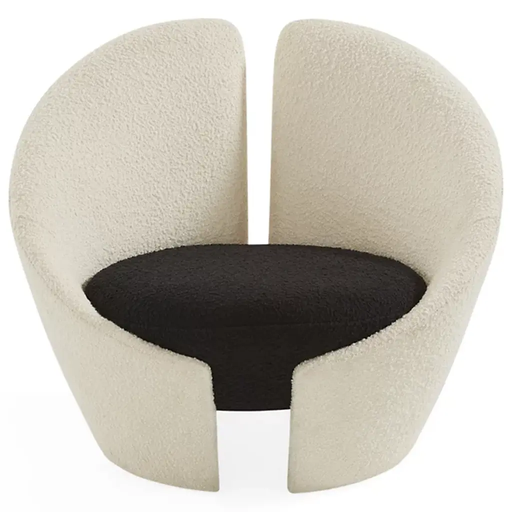 The Marais Lounge Chair from Jonathan Adler is a striking blend of black and white, offering a fresh, chic, and graphic pop to any space. Its classic capsule silhouette is elevated by an intriguingly sculptural split, upholstered in a luxurious two-toned bouclé. Equal parts cozy lounge chair and objet d’art, this chair makes a bold statement in any room. Whether adding a modern touch to a Brooklyn Brownstone parlor or fierce elegance to a fashionista’s boudoir, this chair is stylish and functional.