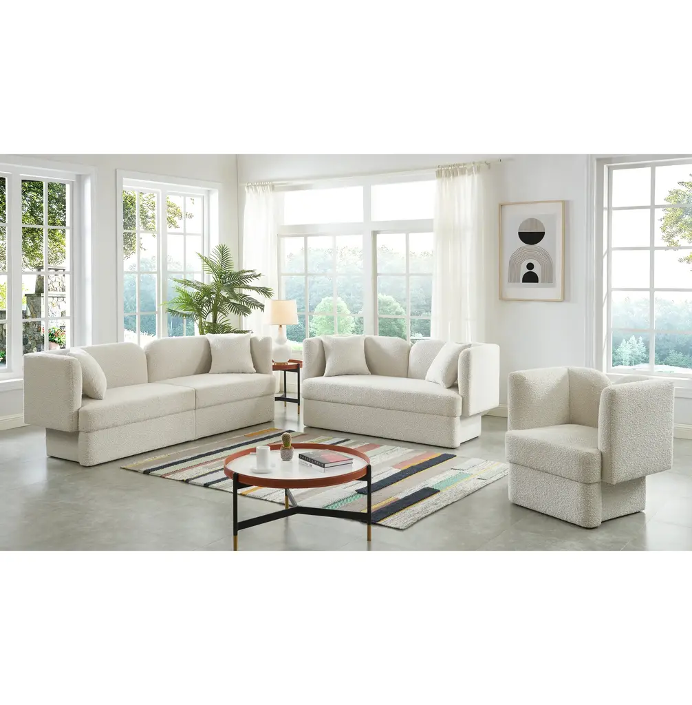 Marcel Boucle Fabric Upholstered Chair, Cream