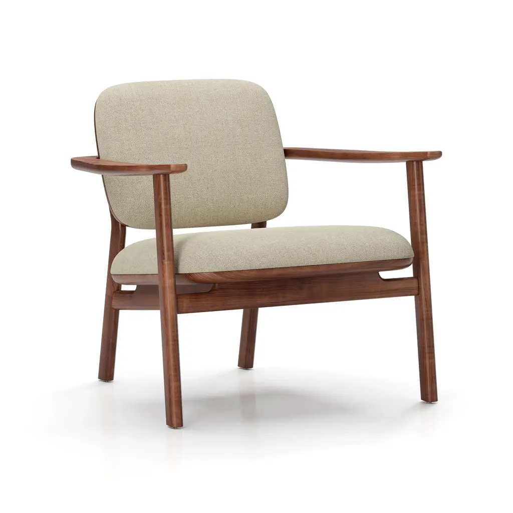 An ode to the beauty of contrasts, the Marea Lounge Chair from Stellar Works is a sophisticated, sculptural design by Alessandro Munge. This elegant chair tells a story where softness meets strength, blending the designer's Italian heritage with a contemporary Canadian sensibility. Its solid wood frame is a poetic study in form, with subtle curves and clean lines that flow harmoniously. The unique, floating seat design adds a sense of lightness, unifying residential comfort with hospitality finesse in one timeless piece. Highlights: